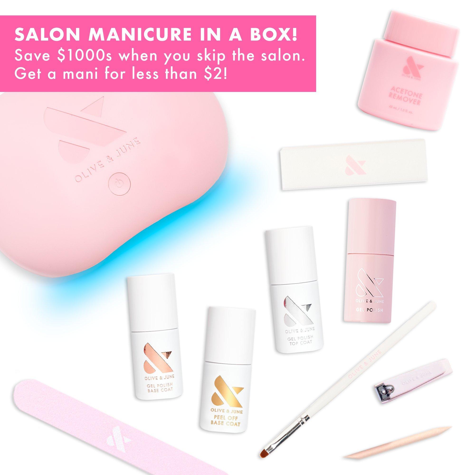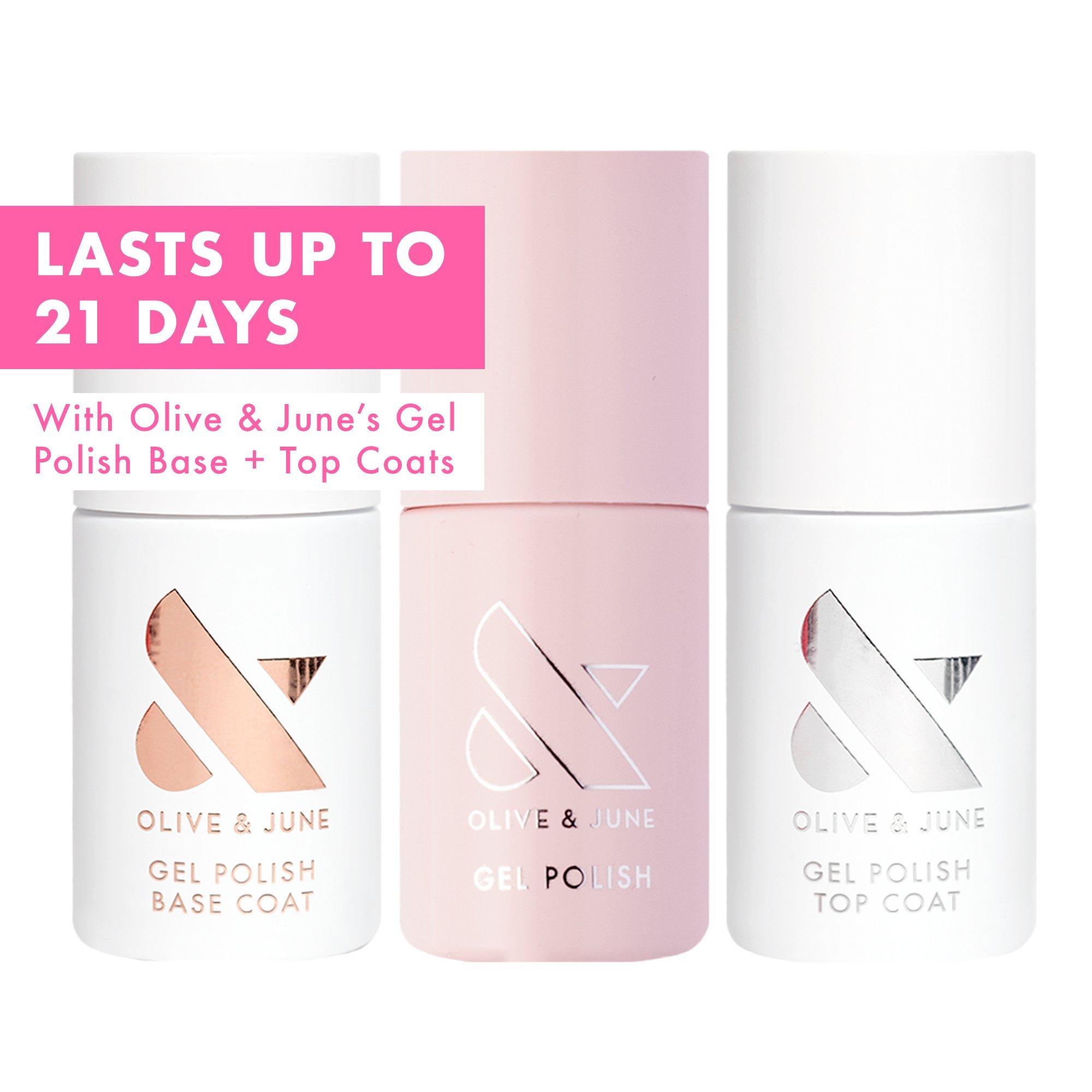 Everything you need for a salon-quality gel mani at home. Olive & June Gel HEMA-free, 15-free, long-lasting gel polish for up to 21 days of salon-quality results at home. Removes without damage.