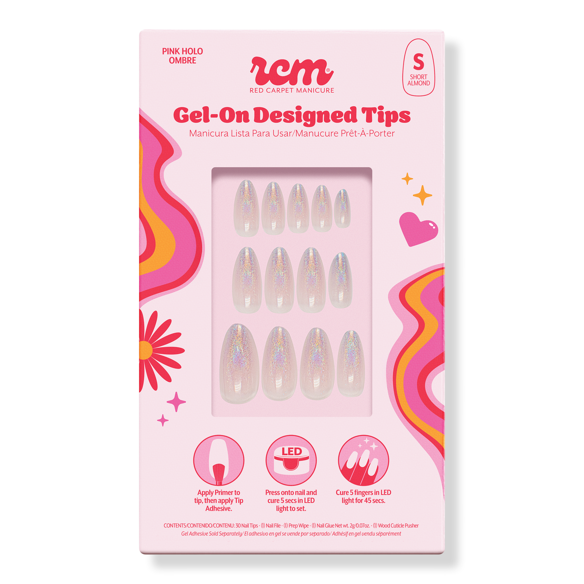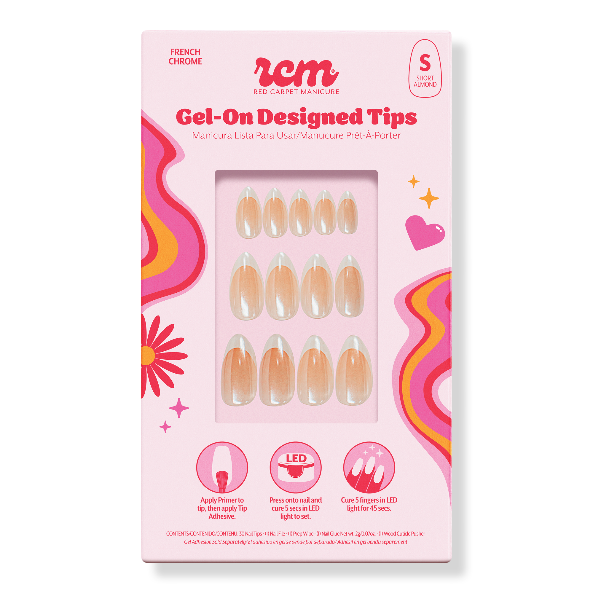 Quick, mess-free, nail art tips! Three exciting designs! Red Carpet Manicure's Gel-On LED Cured Designed Nail Art Tips offers a simple, DIY application process that adheres securely and comfortably, ensuring a flawless fit that lasts!
