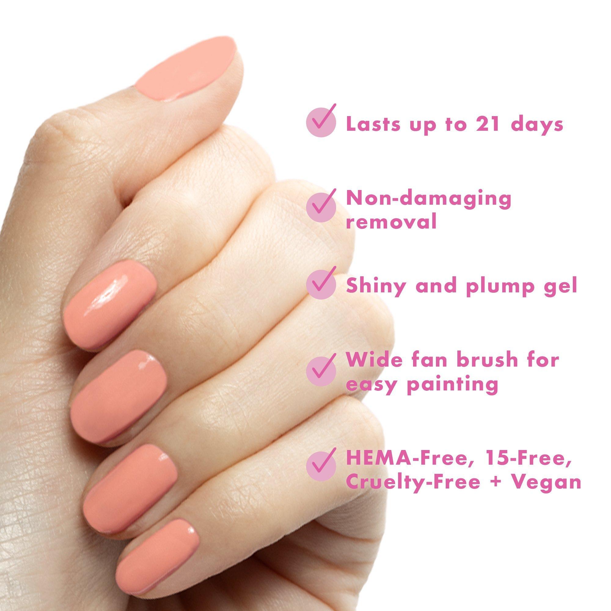 Olive & June HEMA-free, 15-free, long-lasting gel polish for up to 21 days of salon-quality results at home. Removes without damage. UV LED Lamp Needed.