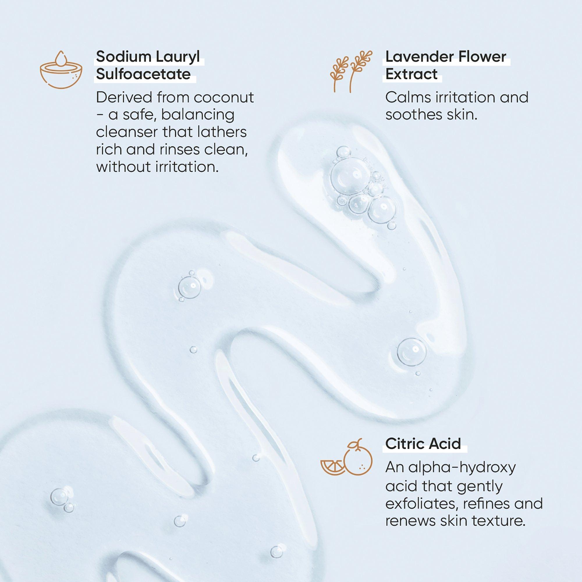 Squeeze a penny-size amount into palm. Massage over damp skin in a circular motion. Rinse thoroughly with cool water. Excellent for daily use on all skin types.