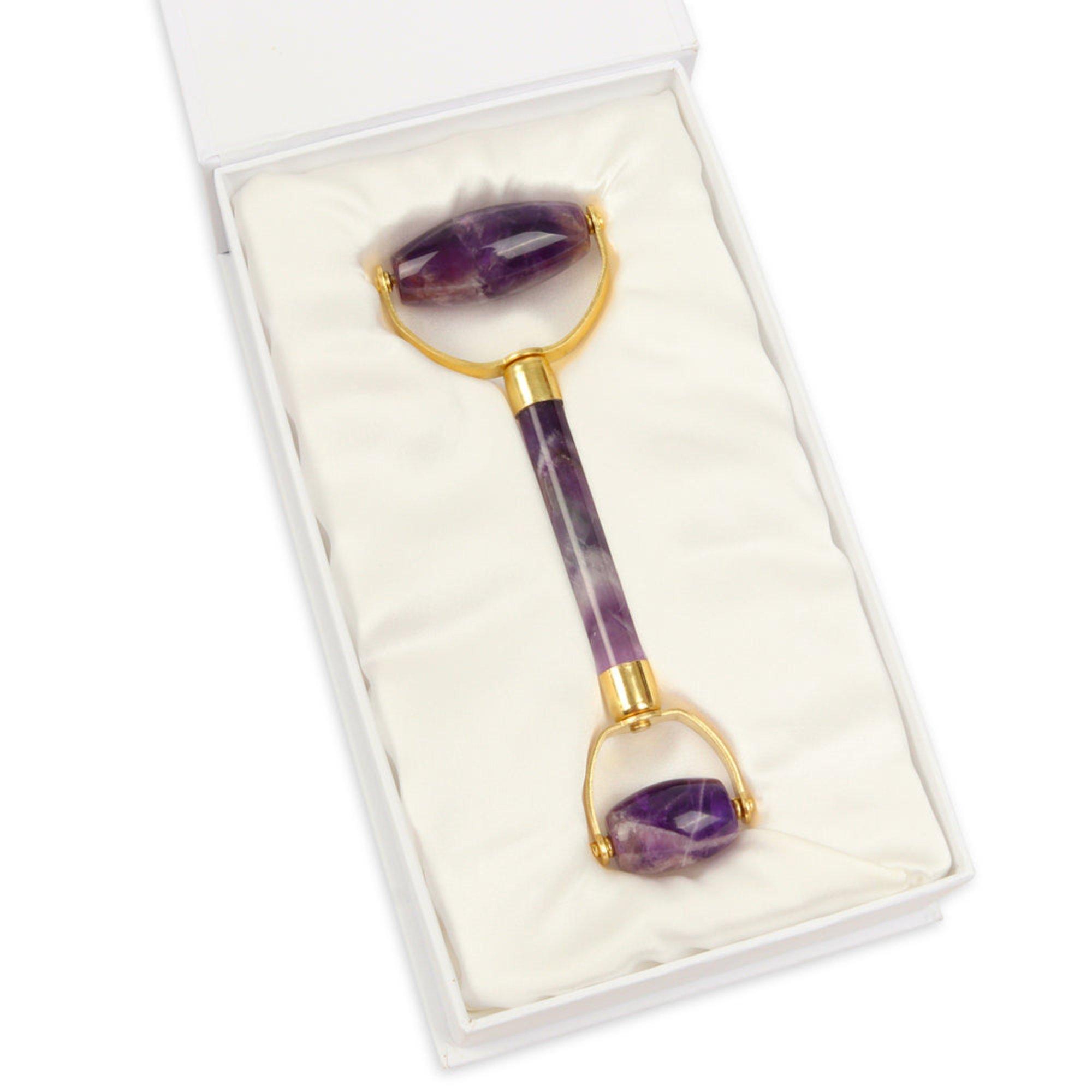 Experience the Premium Double-Headed Amethyst Roller—the "most attractive crystal roller available" with superb quality that customers say is "stunning" for its jewelry-grade craftsmanship and lifetime guarantee. Ancient beauty wisdom meets spiritual benefits.