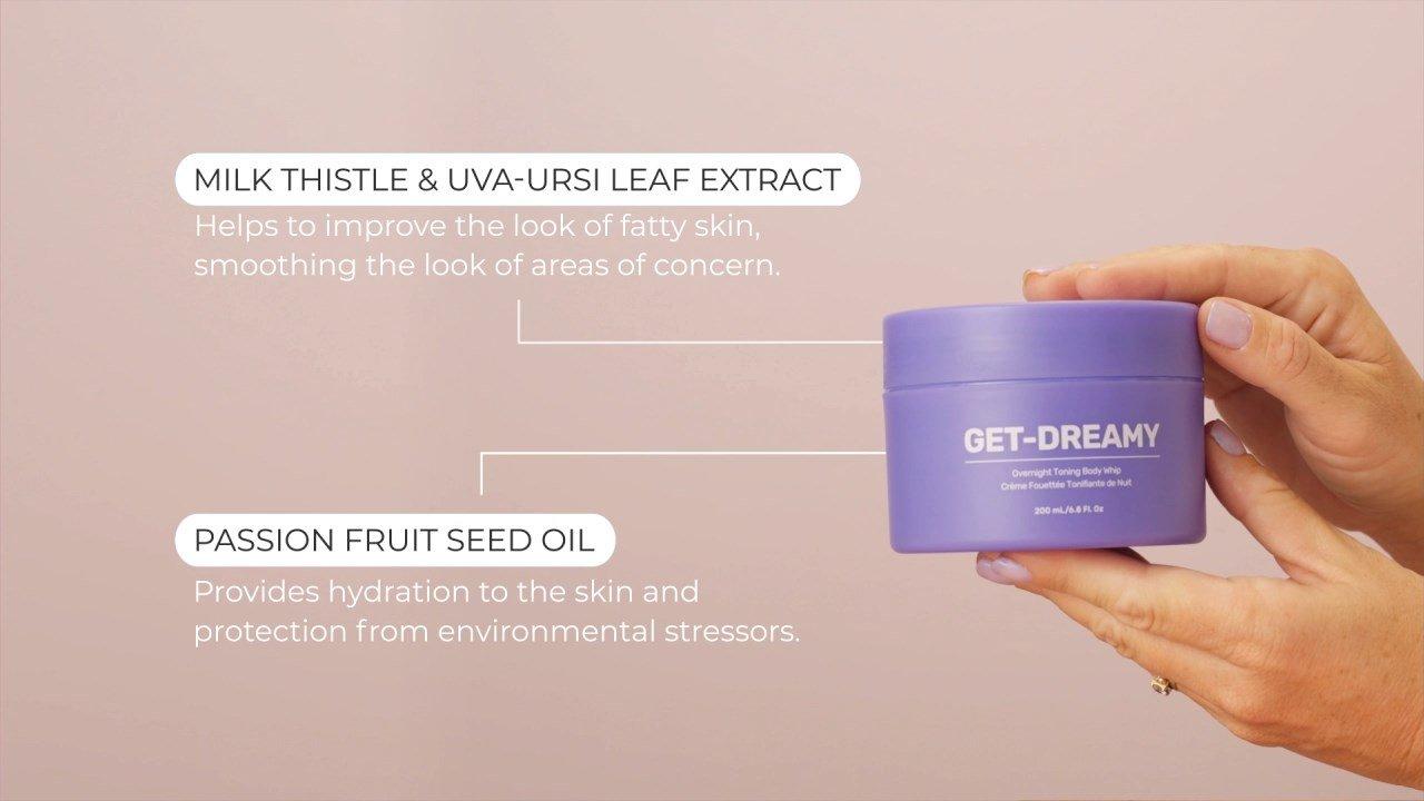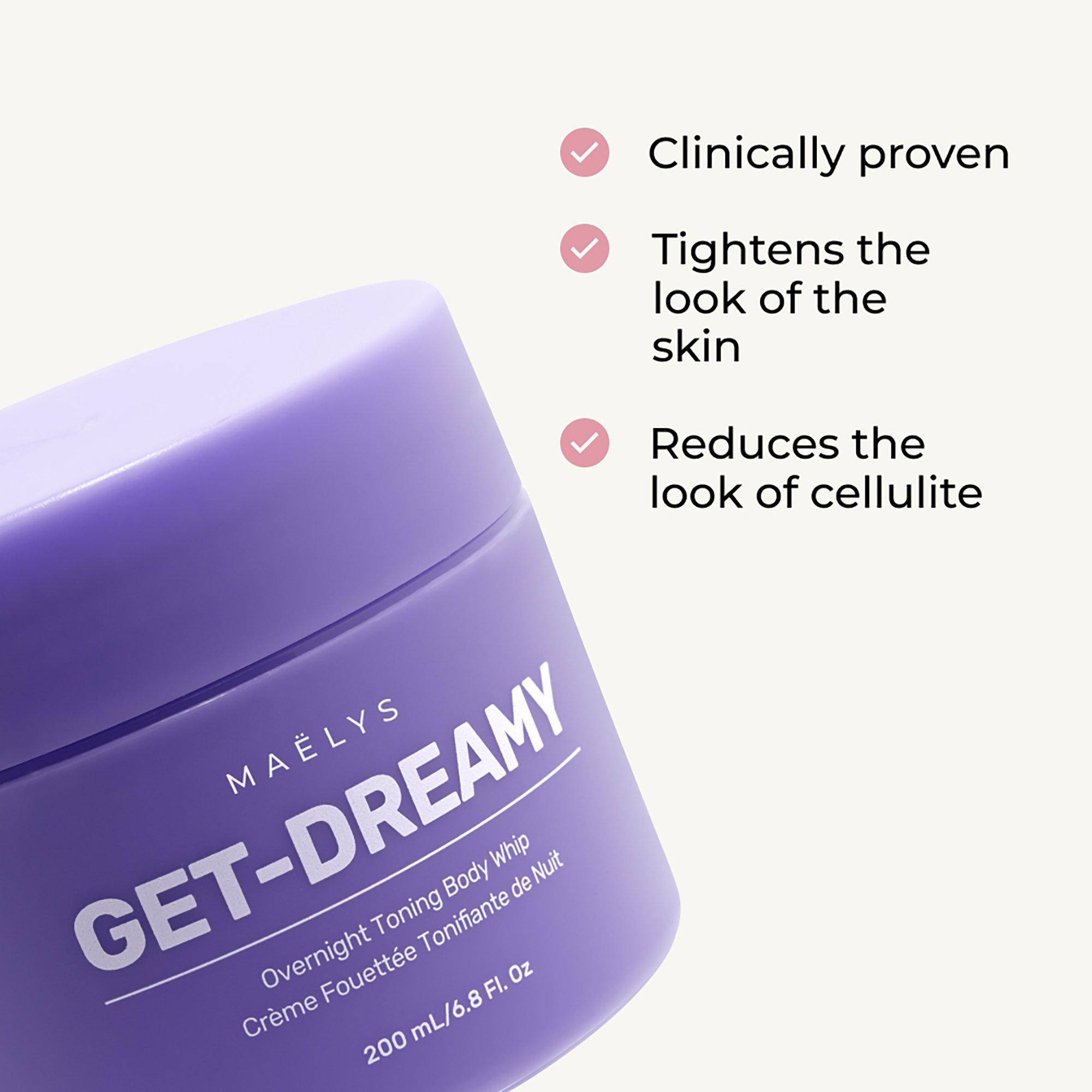 MAËLYS GET-DREAMY Overnight Toning Body Whip helps reduce the look of cellulite and smooth the look of your skin while you sleep. Crafted with Milk Thistle to help improve the appearance of cellulite and fatty skin, and infused with hydrating ingredients perfect for your nighttime body care routine.