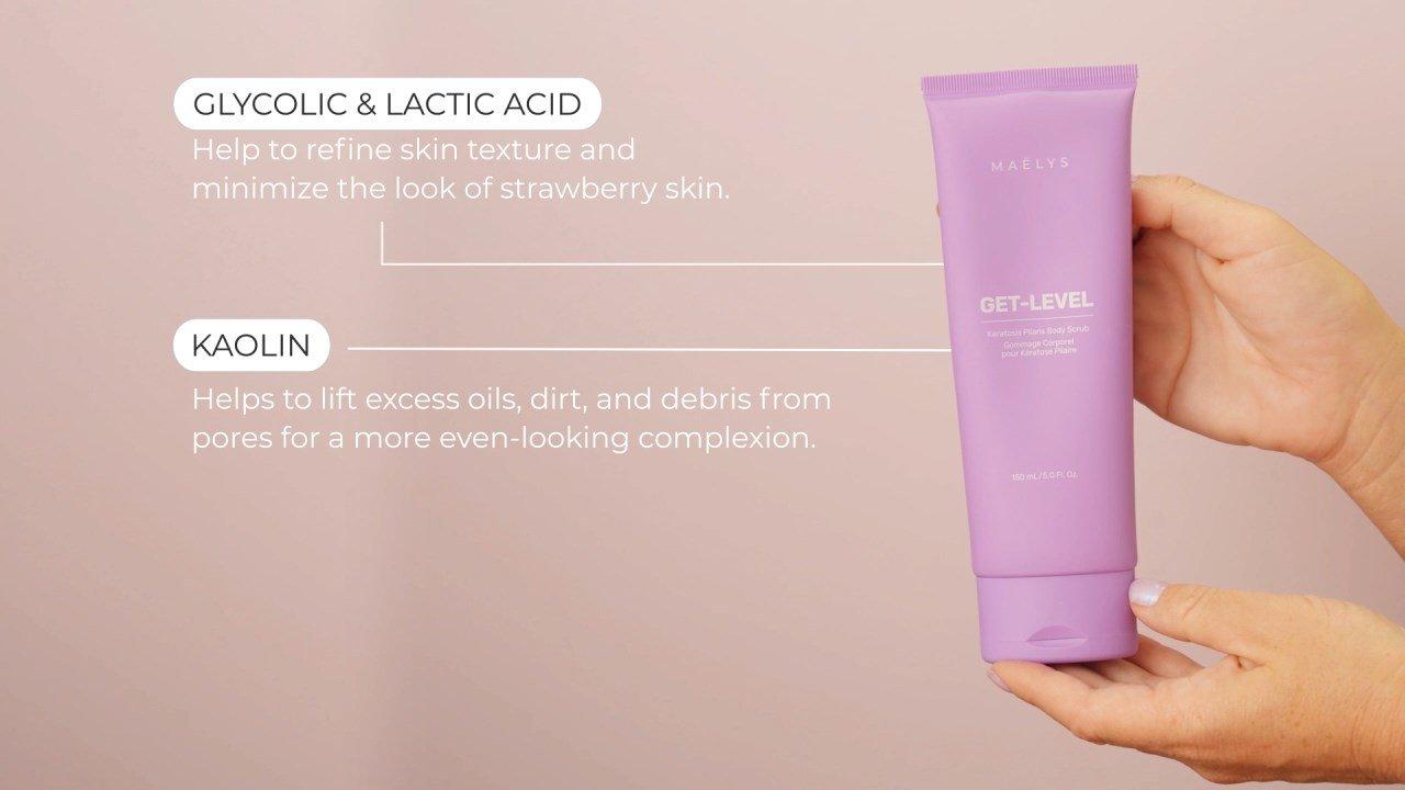 Smooth the appearance of bumpy skin with MAËLYS GET-LEVEL Keratosis Pilaris Body Scrub. This body scrub reduces the appearance of KP by chemically and physically exfoliating to help promote a smoother, brighter, more even look.
