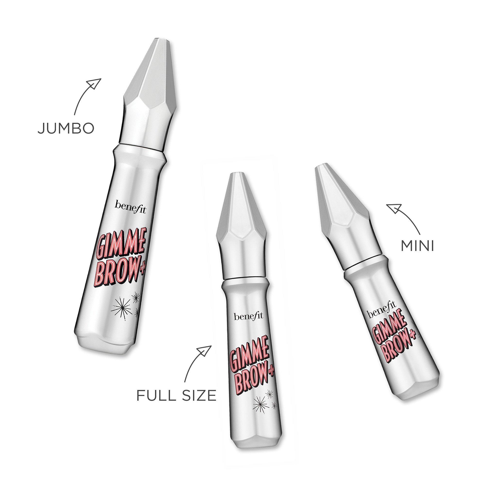 Benefit's bestselling Gimme Brow+ Tinted Volumizing Eyebrow Gel now comes in a JUMBO size! Containing 2X the amount of brow gel as the original full-size, it gives you BIG volume at a BIG value!