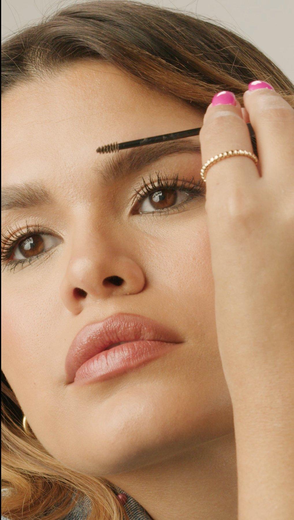 Using short strokes, brush tip along brow to define shape. Brush through to blend and build.
