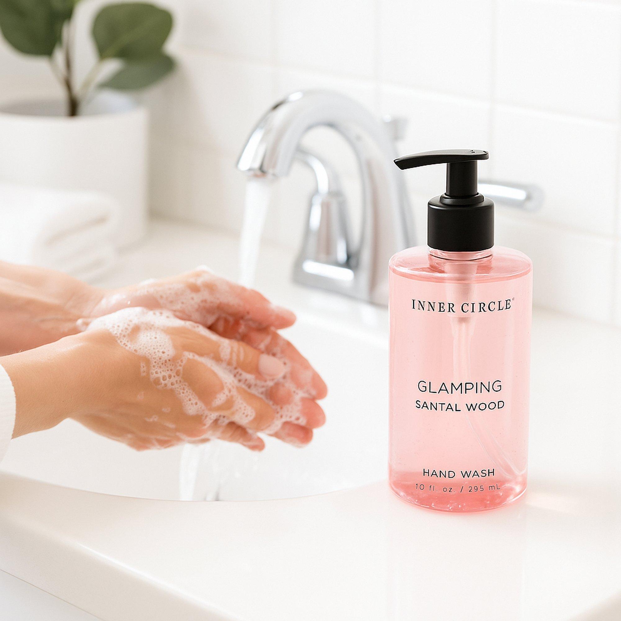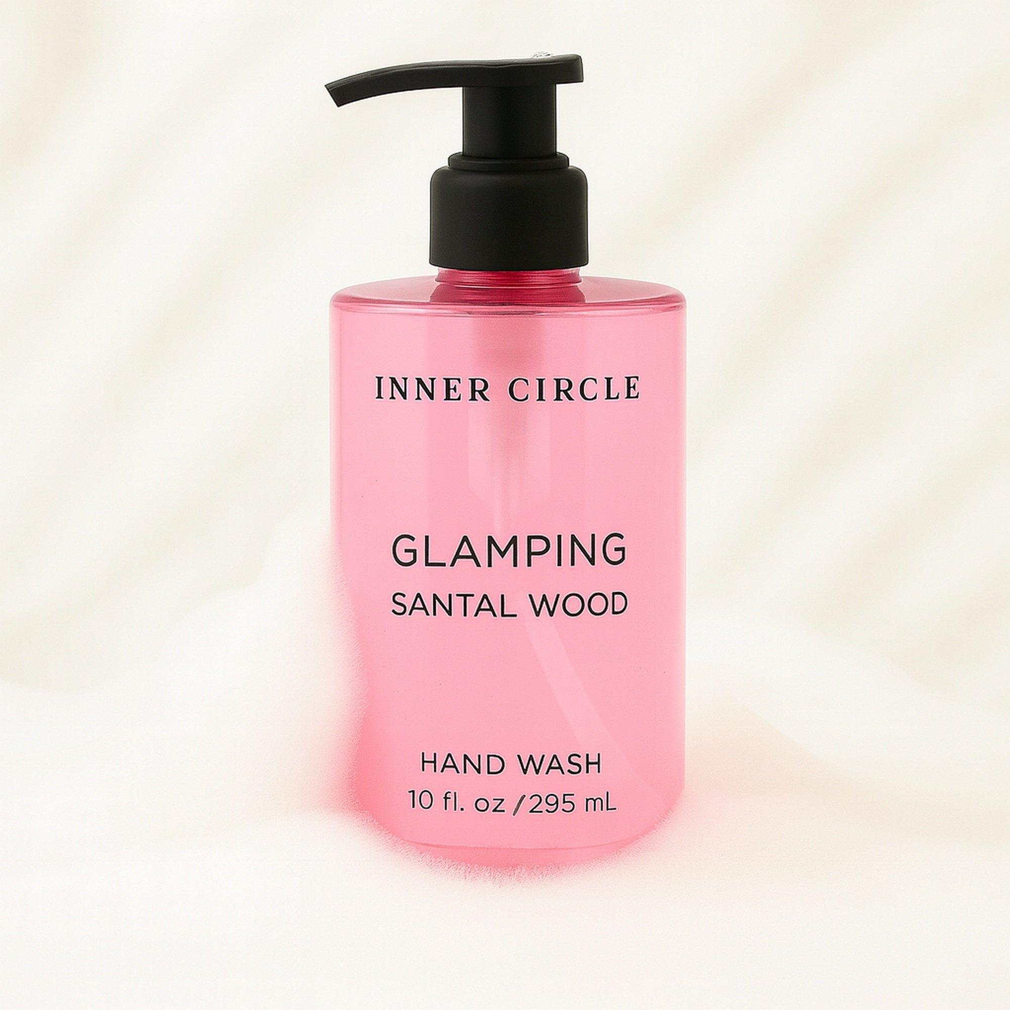 Step into your Inner Circle of self-care with Glamping Hand Wash - where indulgence meets intention. Infused with the warm, sophisticated scent of Santal Wood, this luxurious hand wash transforms a simple routine into a mindful ritual.