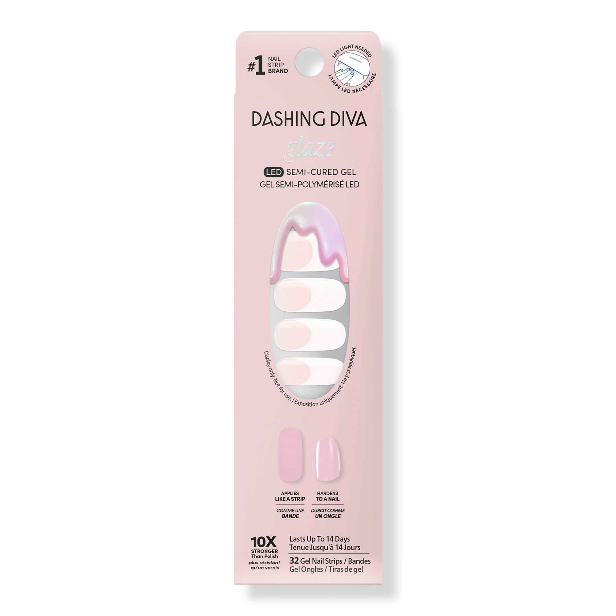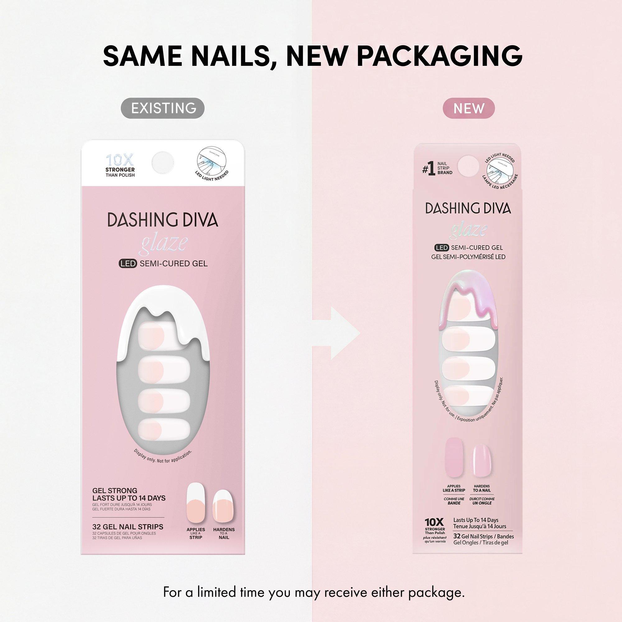 Dashing Diva GLAZE DESIGN Ready-to-wear nail art straight from the salon. Semi-cured gel nail strips with builder gel–like strength for up to 14 days of wear. Cures with an LED lamp in 60 seconds for a long-lasting, high-shine finish.