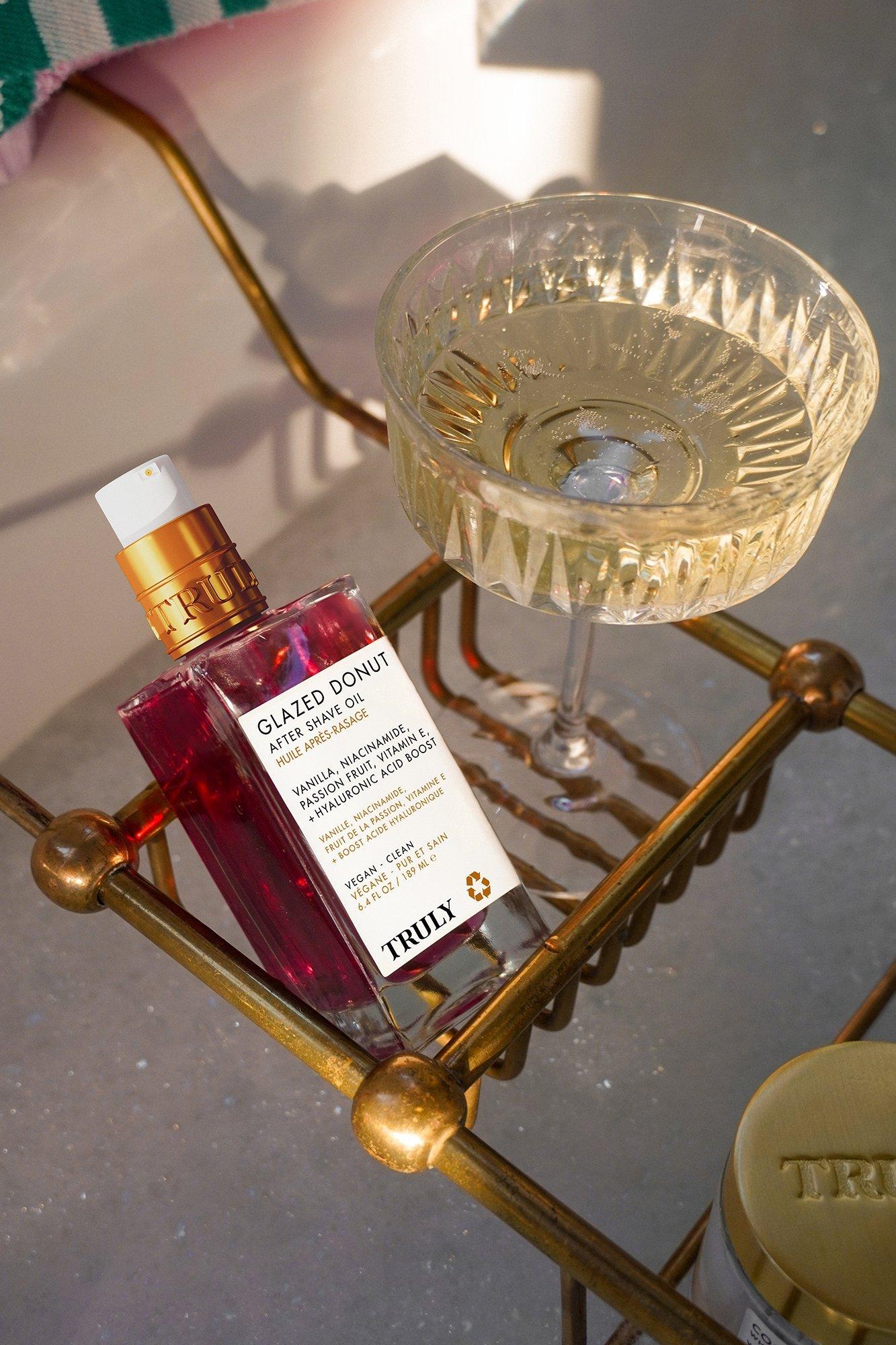 Summer scented, post-shave hydration without the greasy feel. Truly Glazed Donut Shave Oil is a cooling, flash-absorbing daily shave serum that replenishes lost moisture while combating ingrowns and healing active inflammation + bumps.