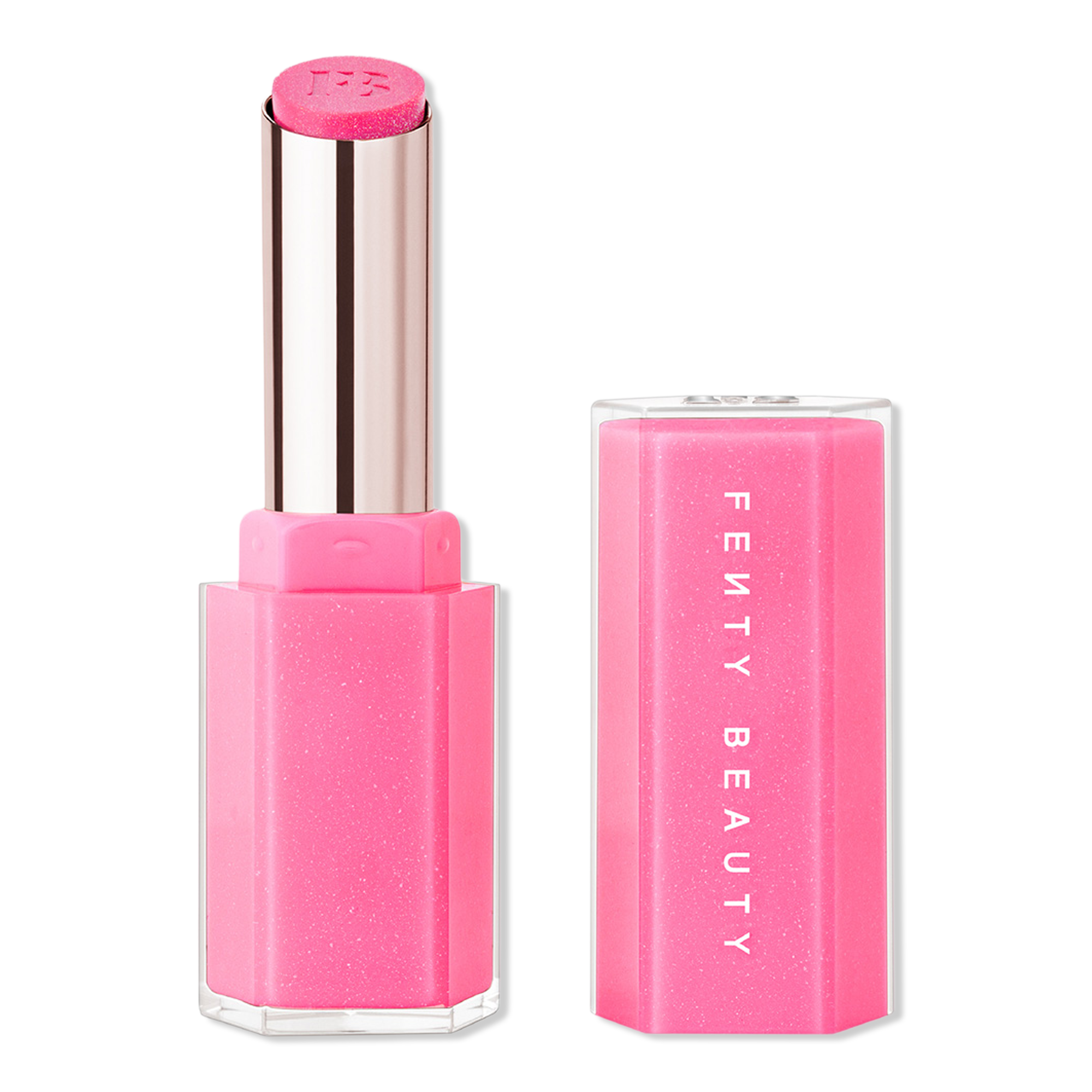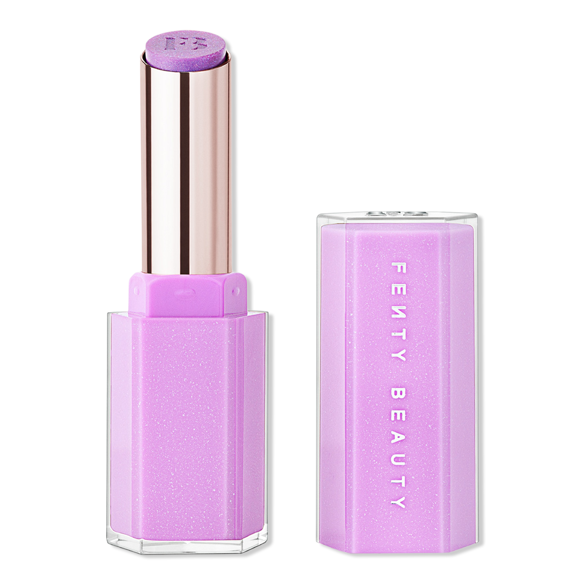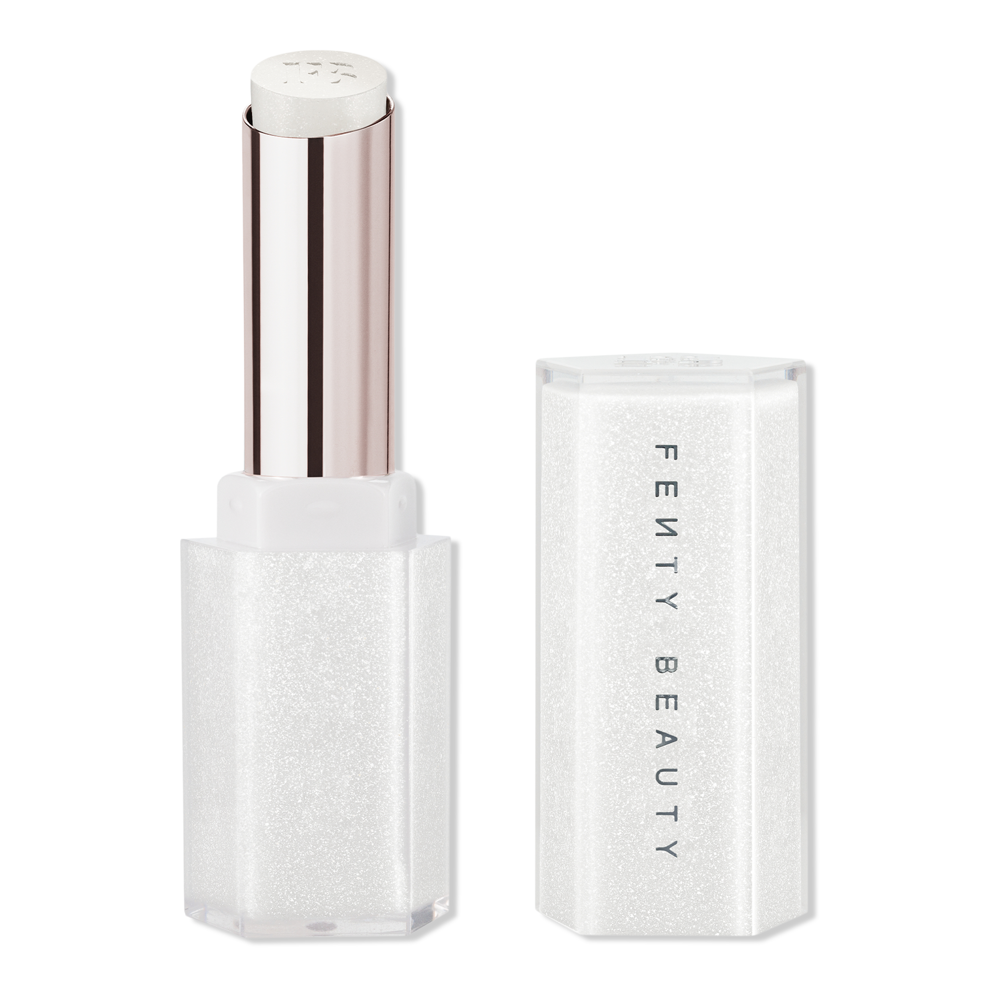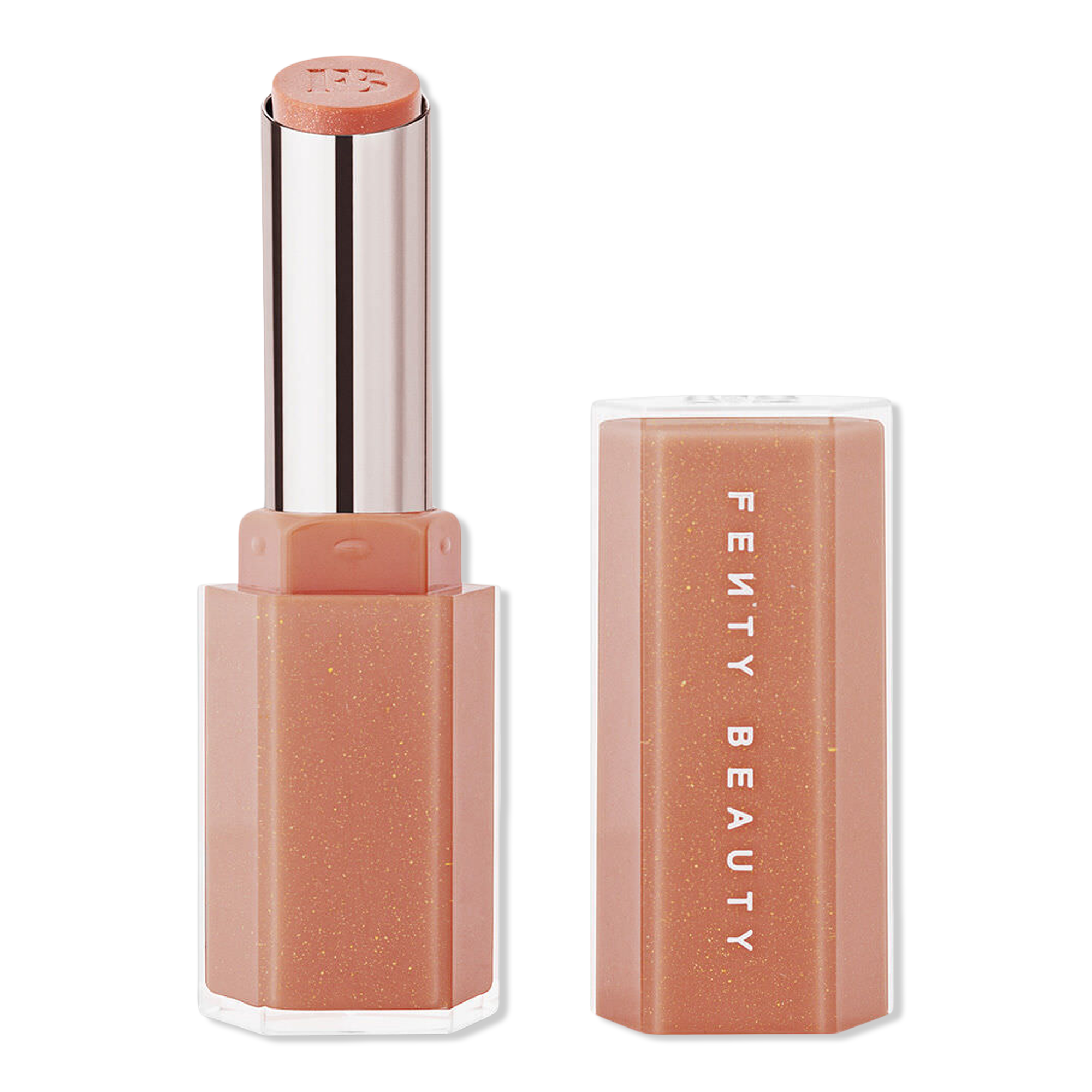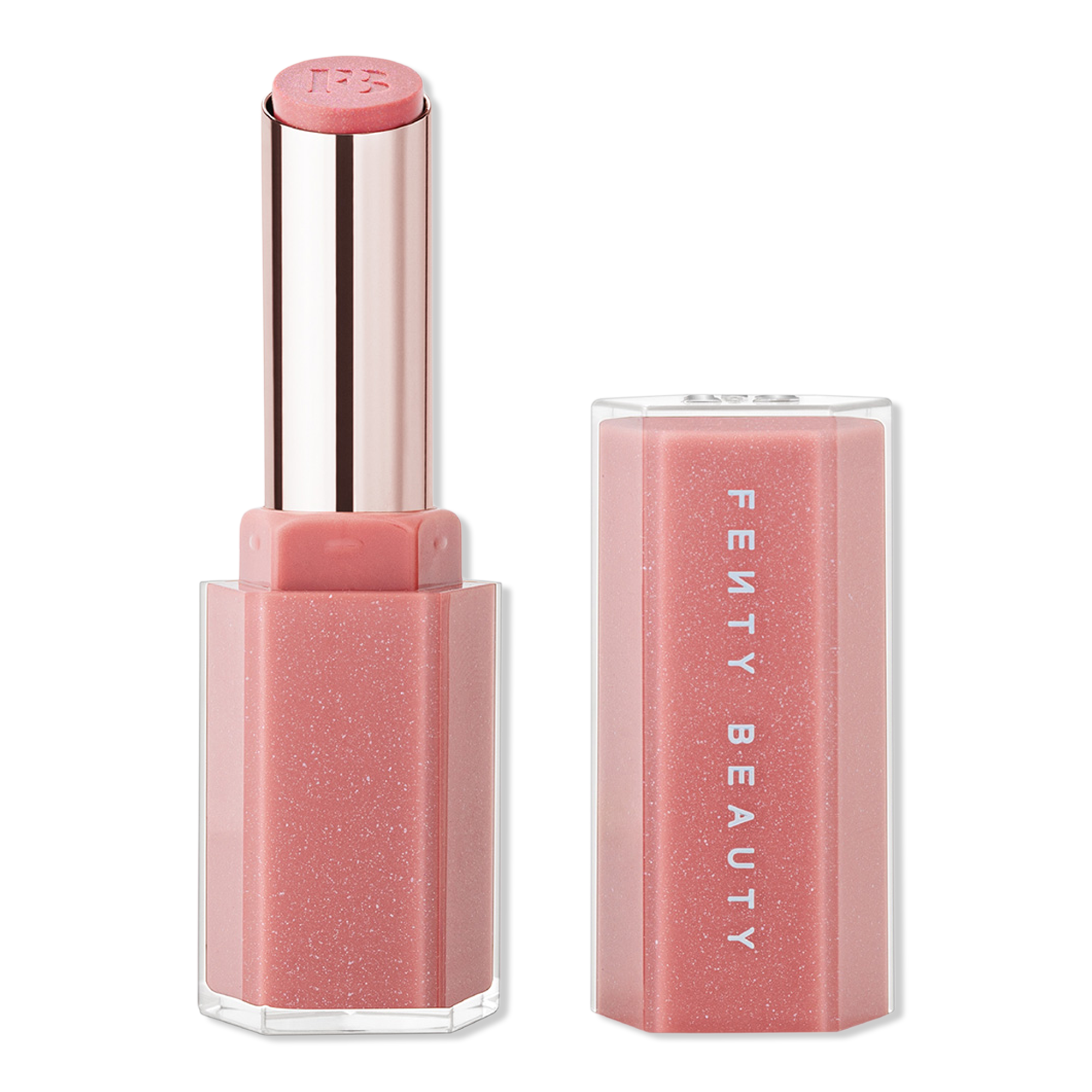 Swipe on FENTY BEAUTY'S Gloss Bomb Stix High-Shimmer Gloss Stick - irresistible shimmer + glossy shine that's loaded with Vitamin E, Shea Butter + Squalane to lock in moisture for up to 8 hours.
