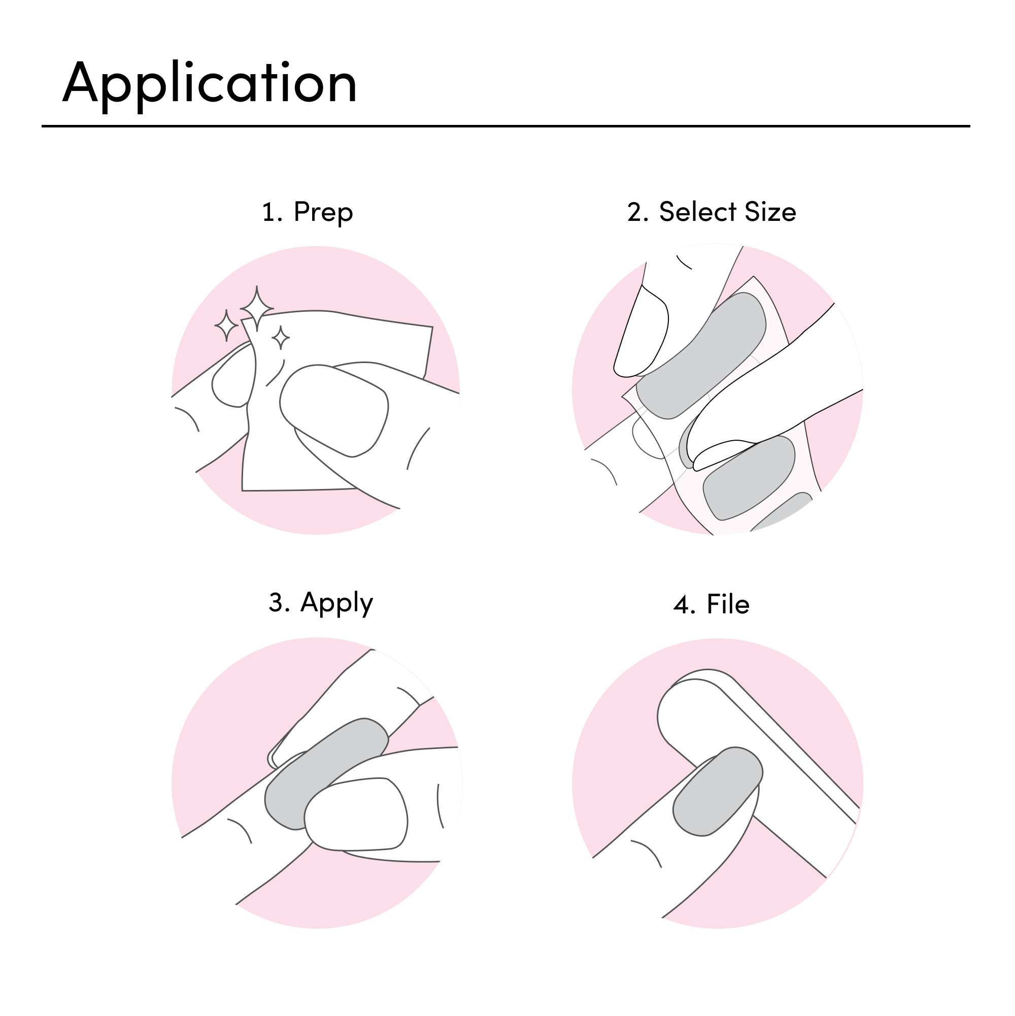 Clean nails with soap and water. Shape nails and push back cuticles. Use the enclosed Vitamin E Prep Pad to ensure nails are clear from oils and residue. Make sure your nails are completely dry before application.
