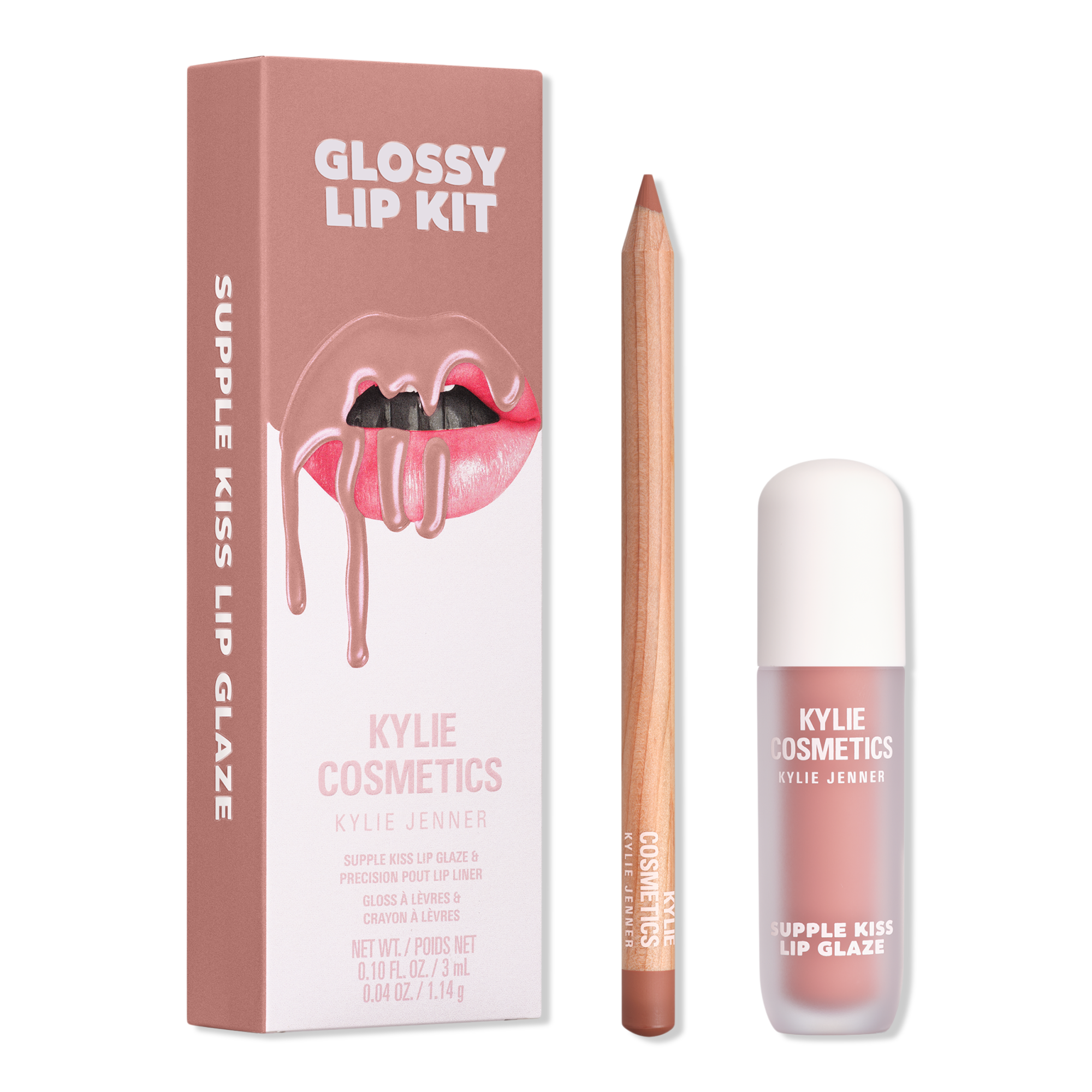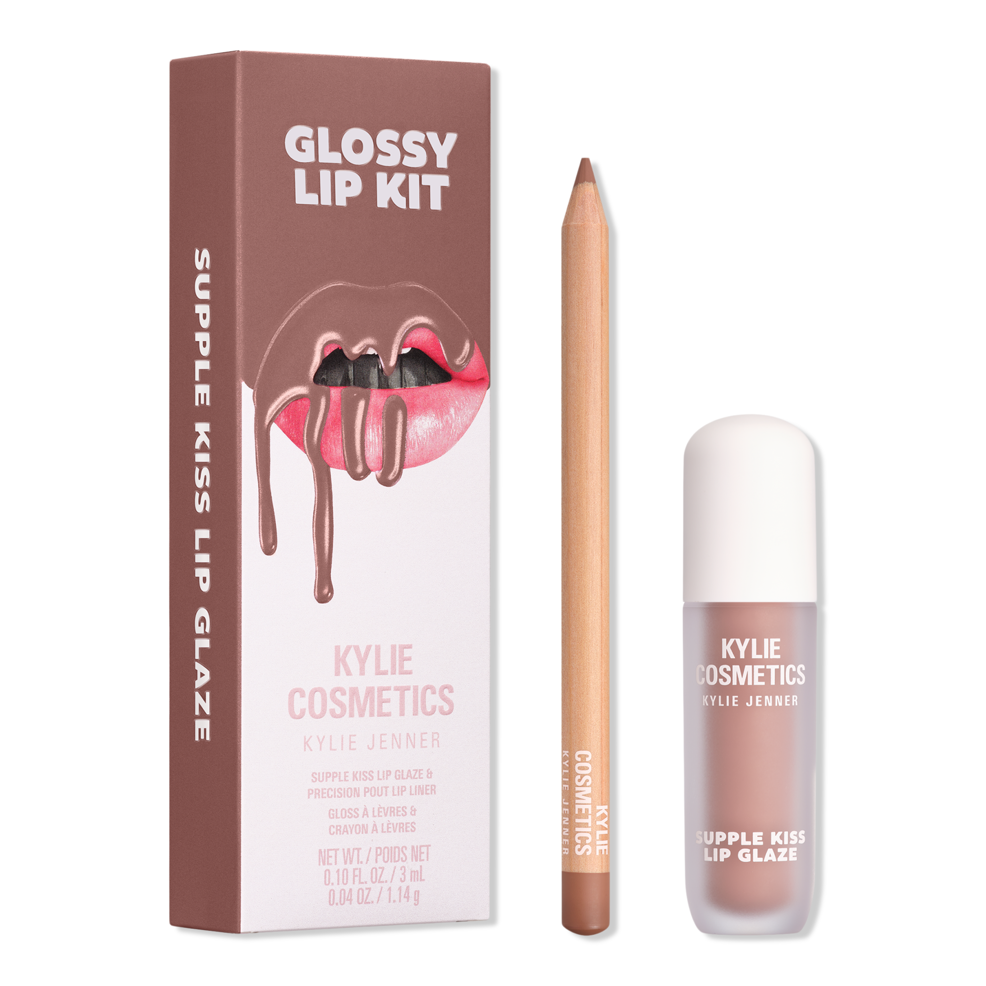 Get the perfect pout with the KYLIE COSMETICS Glossy Lip Kit. Delivering mirror-like shine and rich color, this lip kit sculpts, defines, and contours the lips.