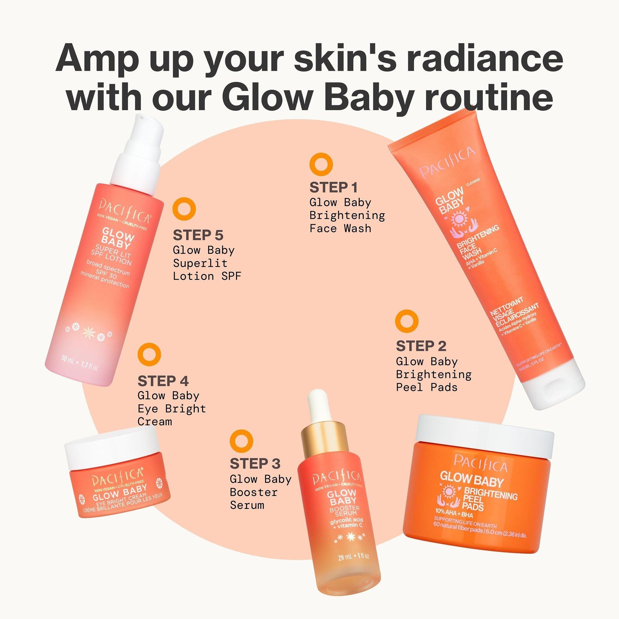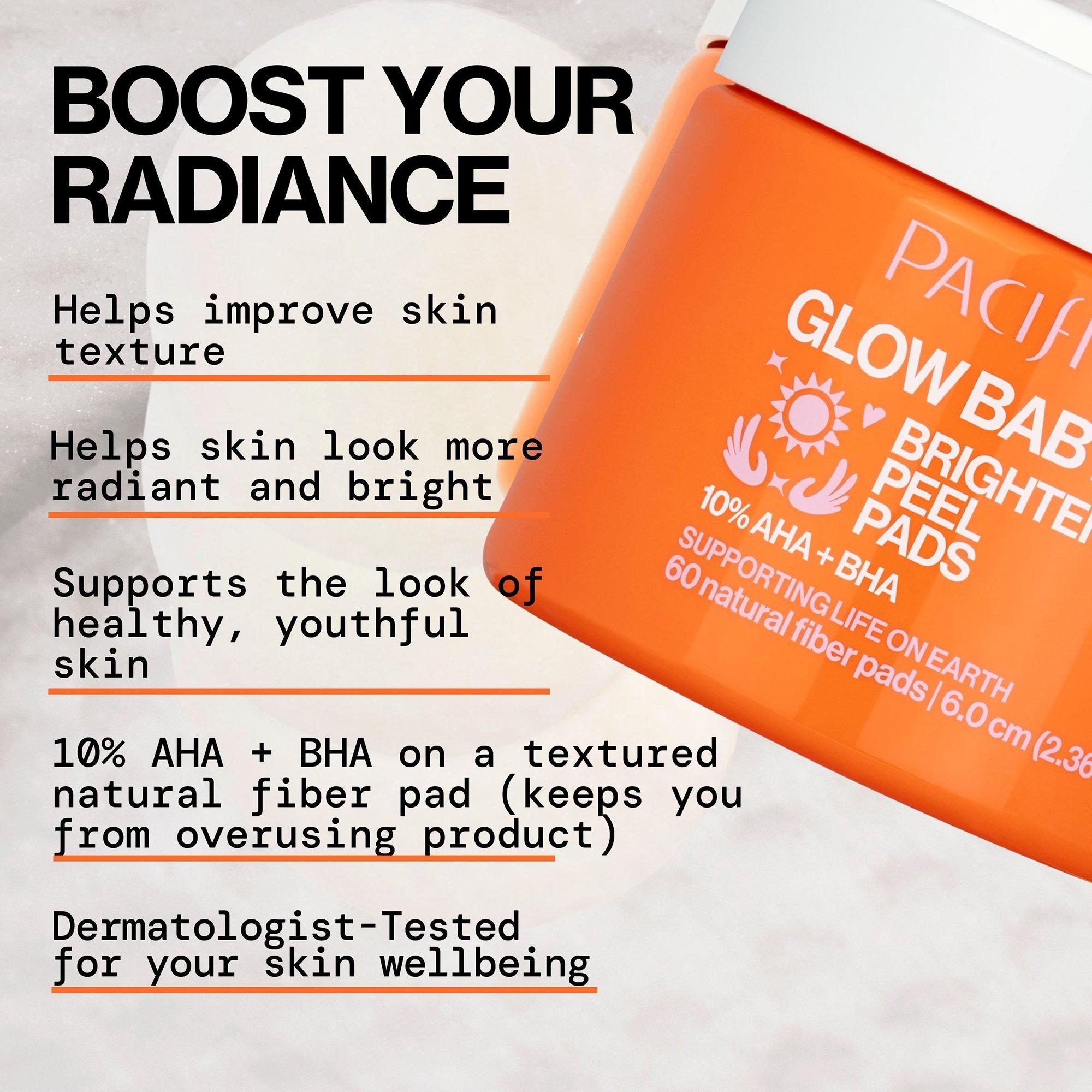 Peel your way to brighter skin with Pacifica Glow Baby Brightening Peel Pads 10% AHA/BHA. The fast-acting multi-acid complex retexturizes & brightens skin.