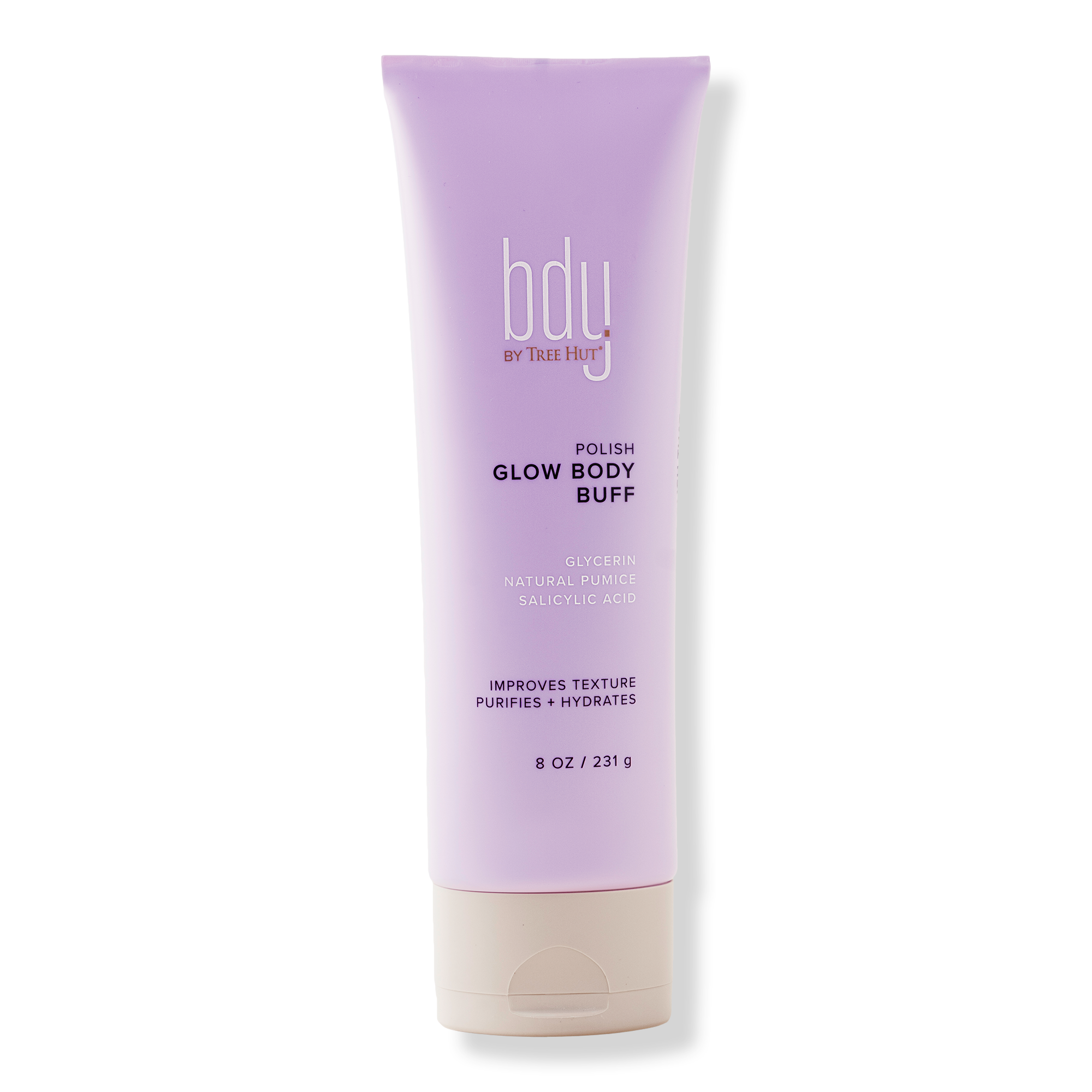 bdy. Glow Body Buff Purifying Gentle Scrub with Glycerin + Salicylic Acid supports skin's natural glow by lightly exfoliating and smoothing skin.