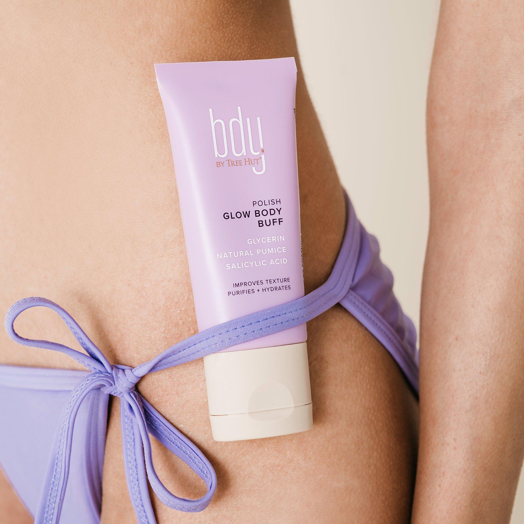 bdy. Glow Body Buff Purifying Gentle Scrub with Glycerin + Salicylic Acid supports skin's natural glow by lightly exfoliating and smoothing skin.