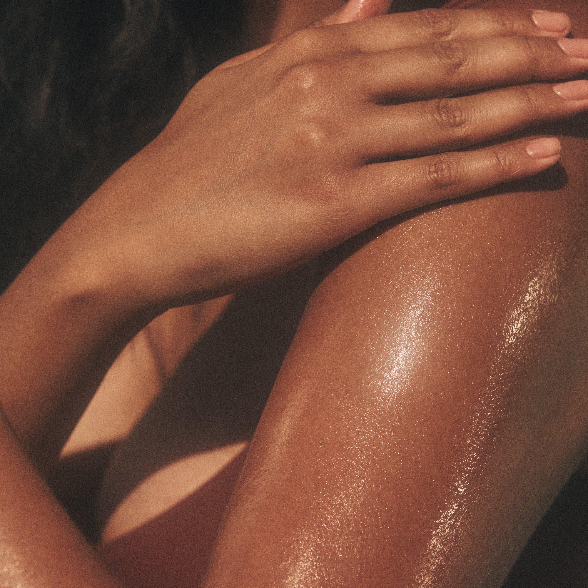 Shake well. Warm a few pumps in the palms of the hands and massage onto still-damp skin after the shower or bath.