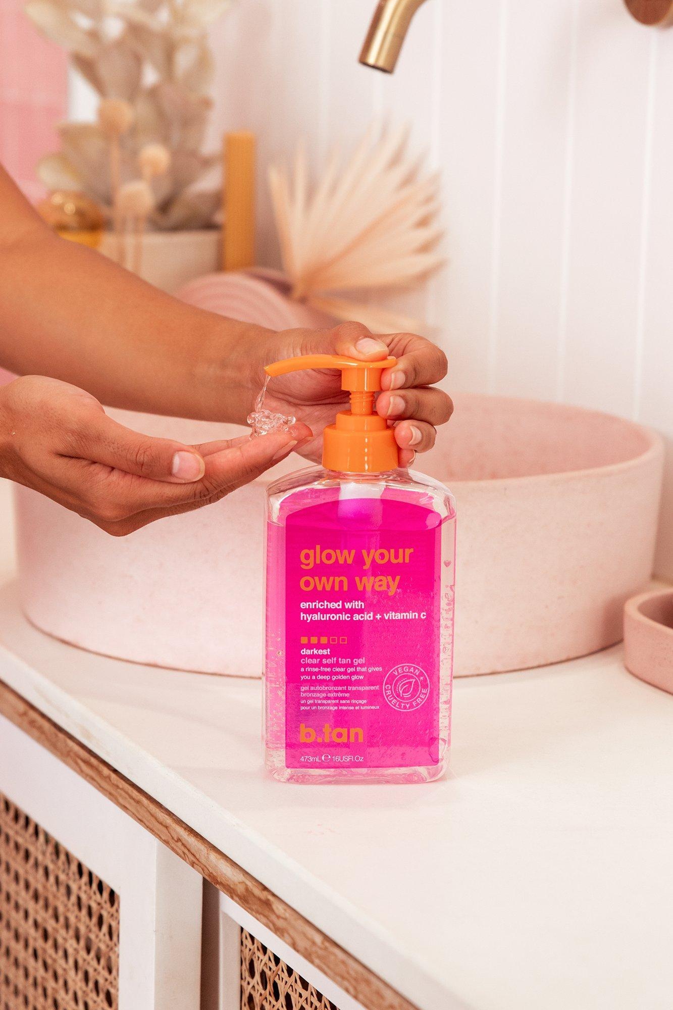 Tan time is any time thanks to b.tan transfer-resistant self tan gel that you can apply & go Glow Your Own Way. No rinse required. Enriched with Hyaluronic Acid + Vitamin C for that ultra juicy glow.
