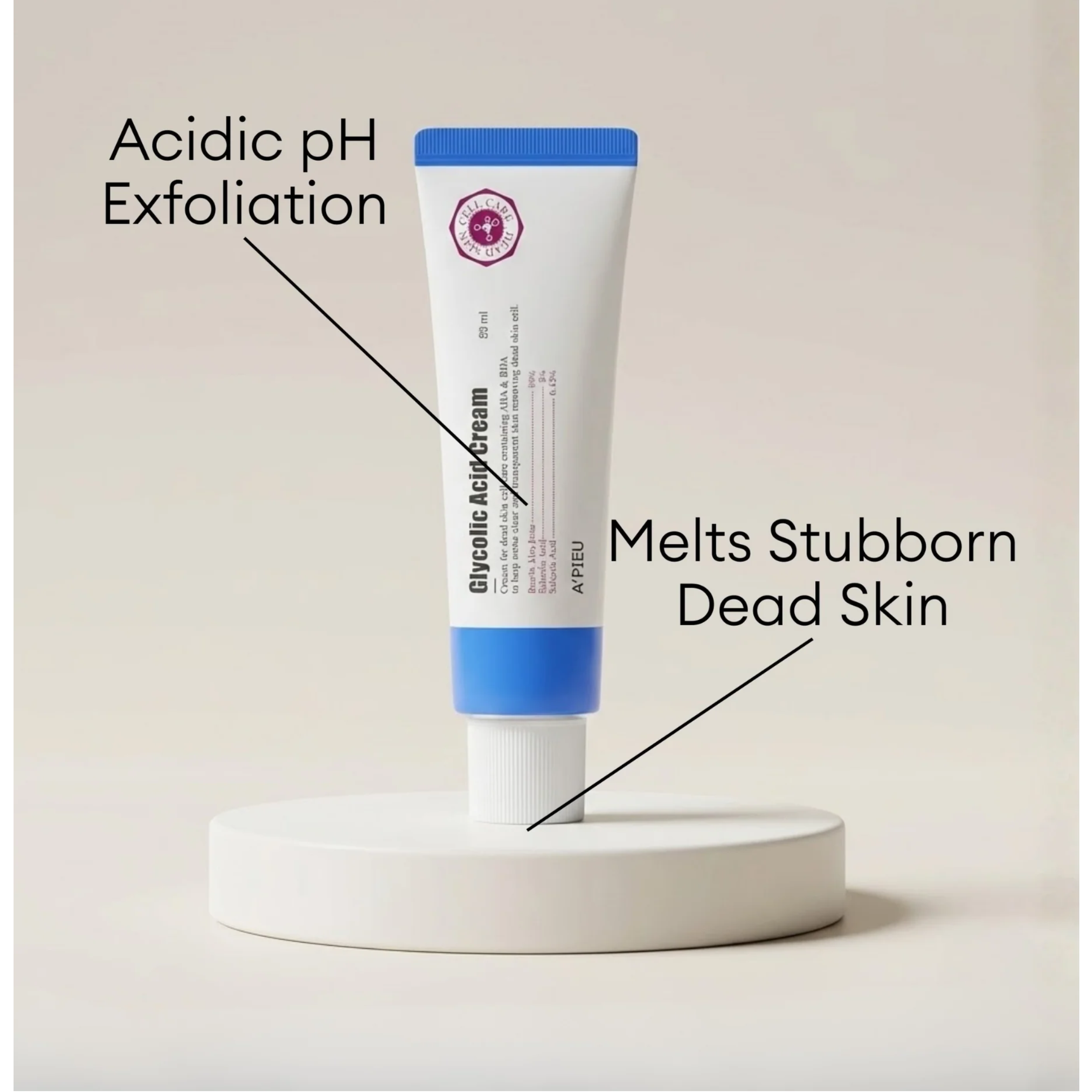 A'PIEU Glycolic Acid Cream is a new gentle peeling moisture cream that melts away stubborn dead skin cells and delivers soft, smooth, and radiance to your skin.