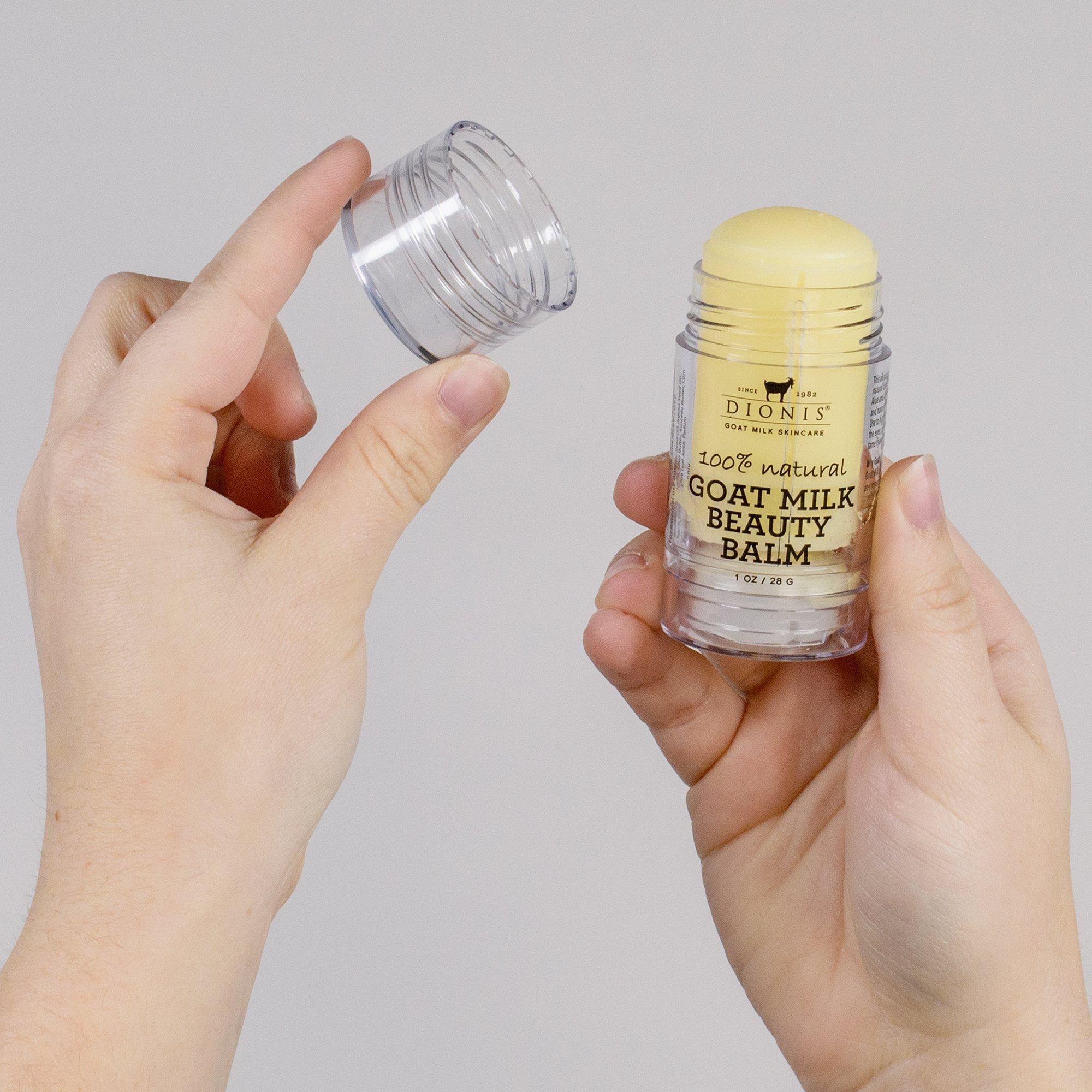 Dionis Goat Milk Beauty Balm is a multitasking must-have, rescuing lips, cuticles, flyaways, and dry spots with one simple swipe. Enriched with goat milk, it melts into skin for soft, nourished radiance anytime, anywhere.