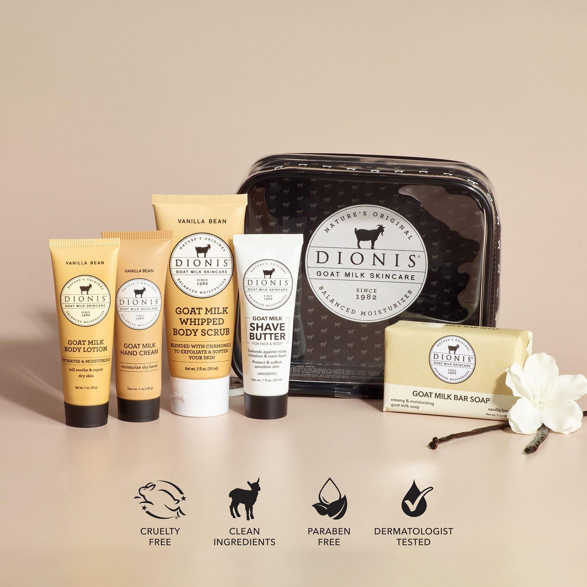 The Dionis Goat Milk Travel Kit offers a complete body care routine in a convenient, travel-friendly set. Infused with nourishing goat milk, it keeps your skin hydrated and soft wherever you go.