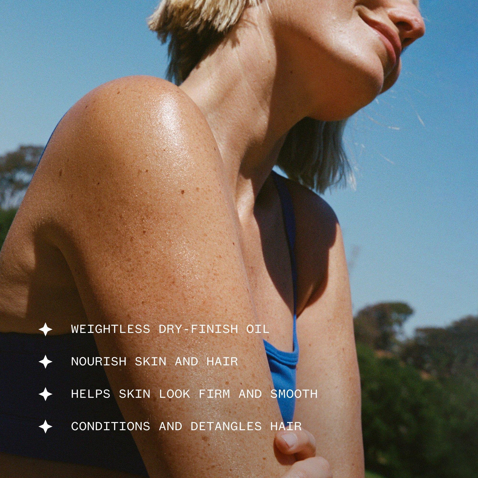 Formulated with clean actives to nourish both skin and hair, Ursa Major’s Golden Hour Dry Oil is a lightweight, dry-finish formula that sinks in instantly to leave skin visibly replenished and hair feeling silky smooth.