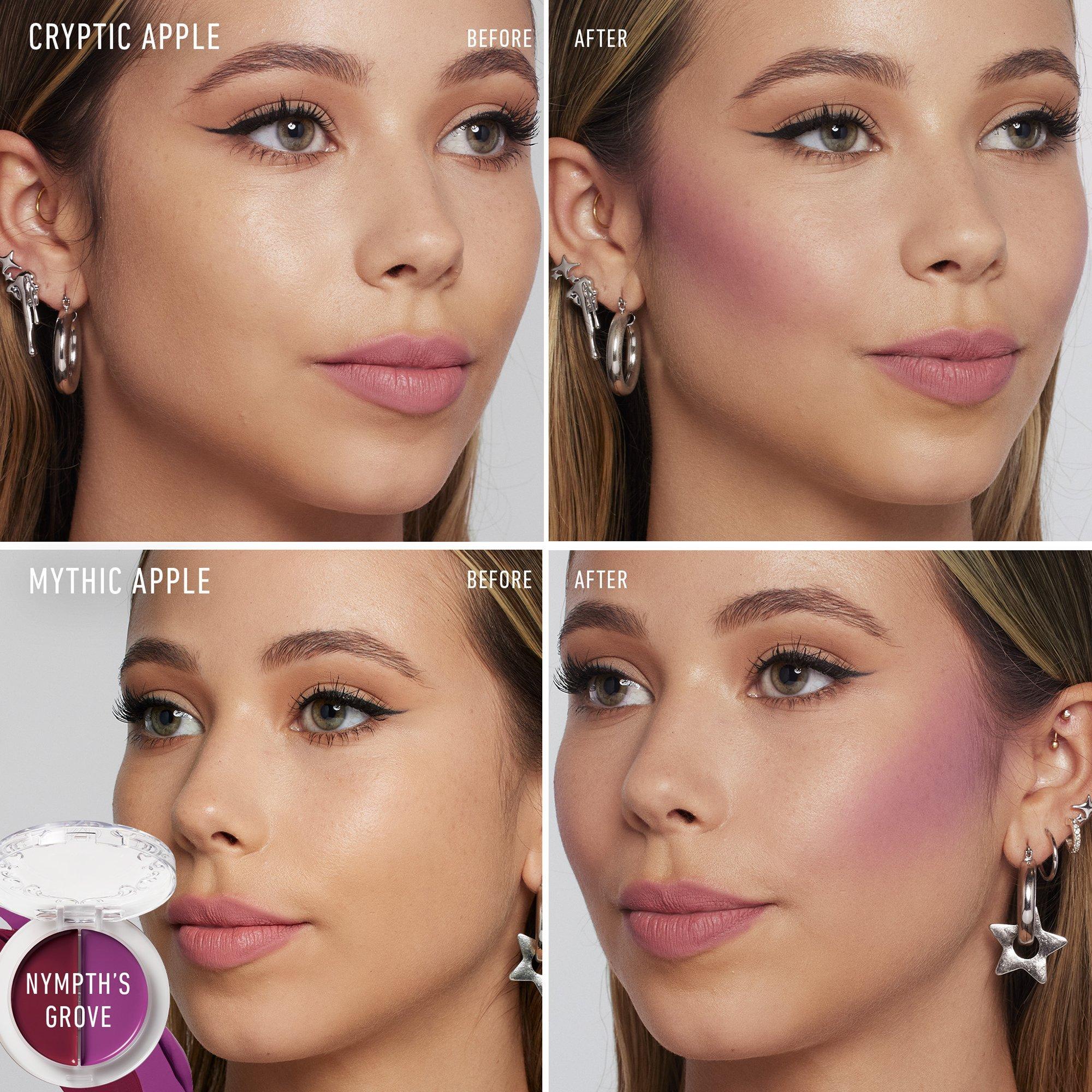 Get virtually effortless blendable cheek color in two creamy, ultra-saturated shades with KVD Beauty's Good Apple Blush Balm Duo. For a pore-blurring, velvety finish that lasts all day.
