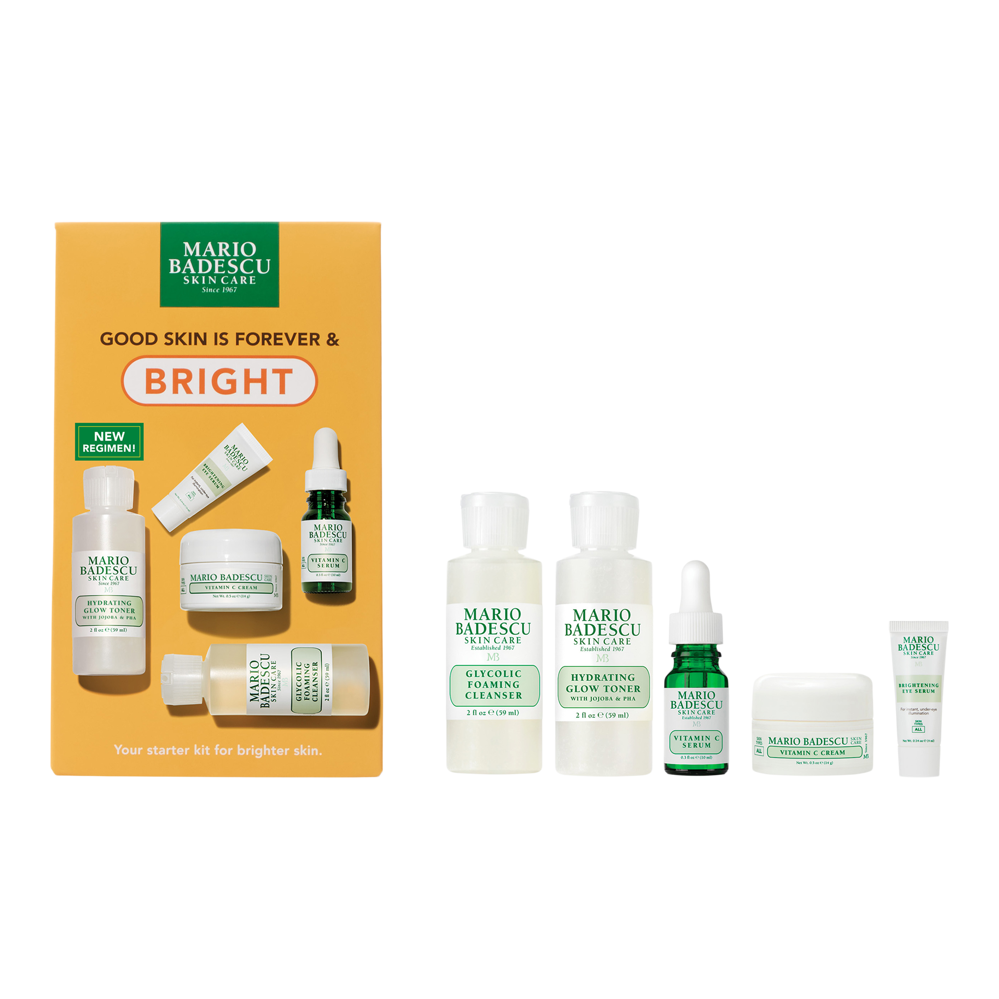 Illuminate your glow with the Mario Badescu Good Skin is Forever & Bright Kit - a curated set formulated to revive dull skin and boost radiance.