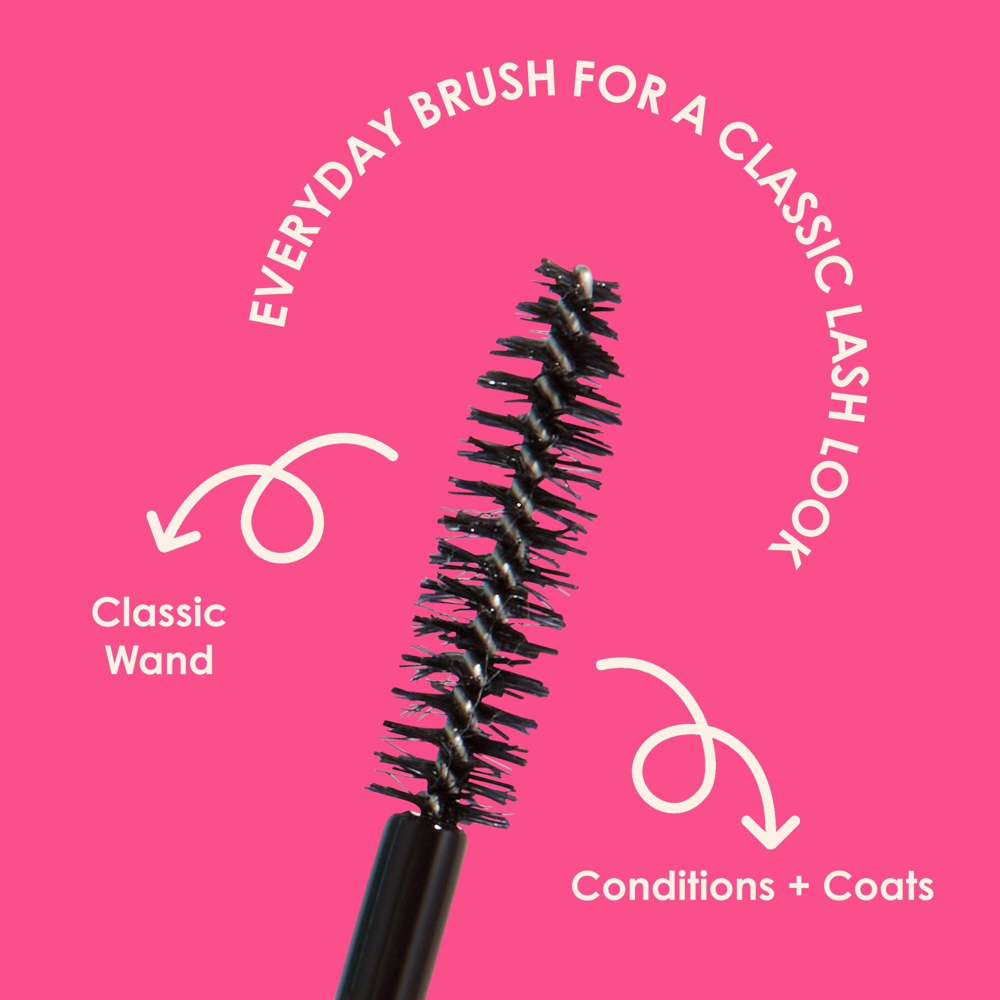 Coat the applicator and sweep brush from lash base to lash tips in an upward motion. Apply multiple coats for volume. May be removed with makeup remover or soap \& water.