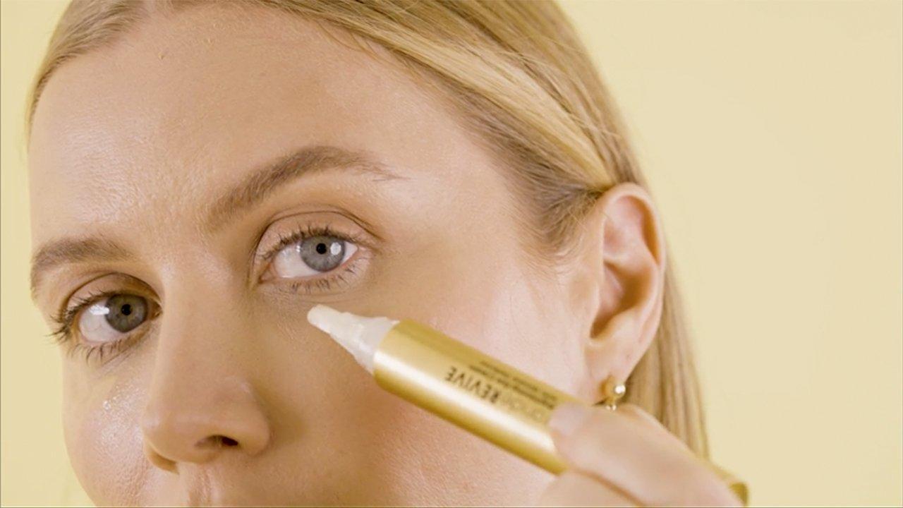 Slowly twist the bottom of the GrandeREVIVE bottle to fill the hygienic brush applicator with product. Use the brush to apply a small amount to clean, dry under eye. Gently blend in using the brush or tap with your fingers around your entire eye area. For maximum results, apply twice daily in the morning and evening.