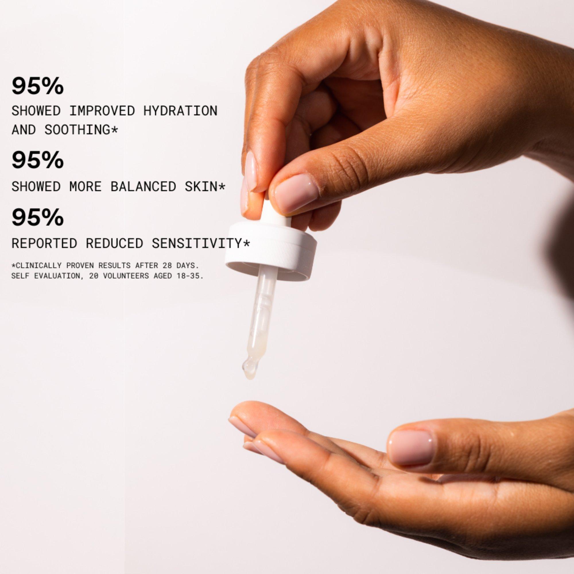 A lightweight, protein-packed, high-performance daily serum designed to deliver immediate hydration, soothing, and balance to all skin types, including sensitive skin.