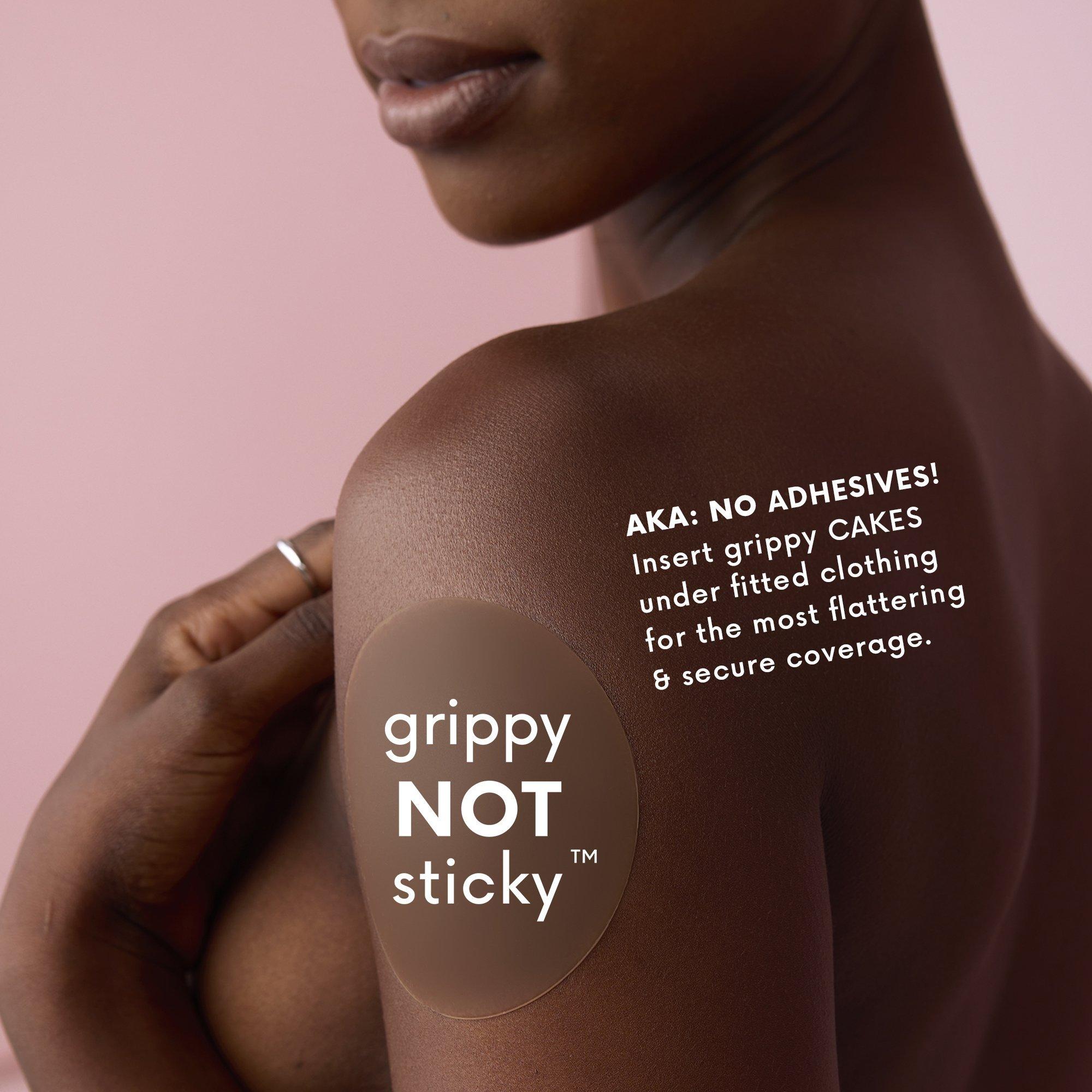 The viral grippy not stickyTM nipple covers by CAKES body. These patent-pending, dermatologist tested & approved covers offer seamless coverage and subtle shaping—no adhesive required. Designed to disappear under sports bras and swimsuits.
