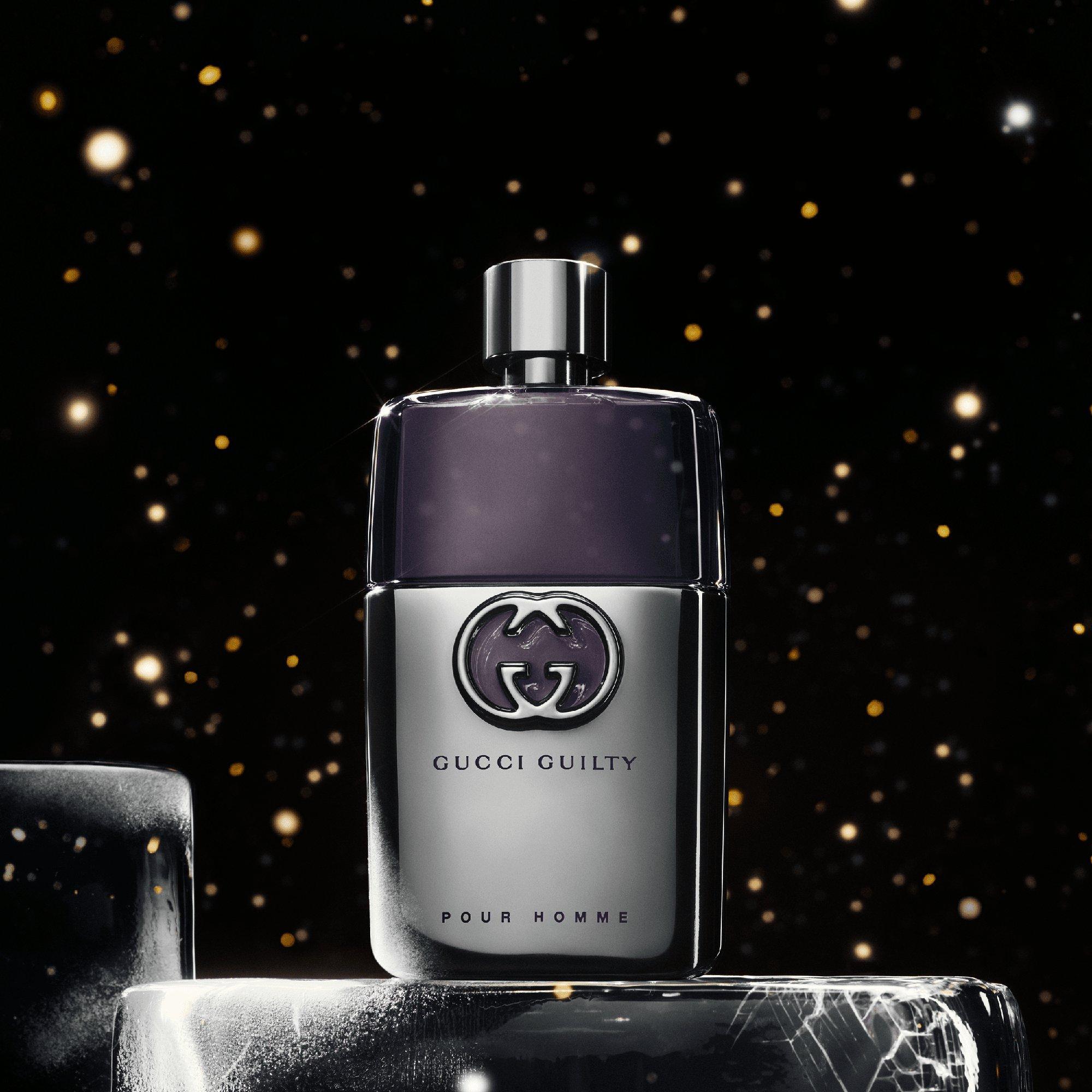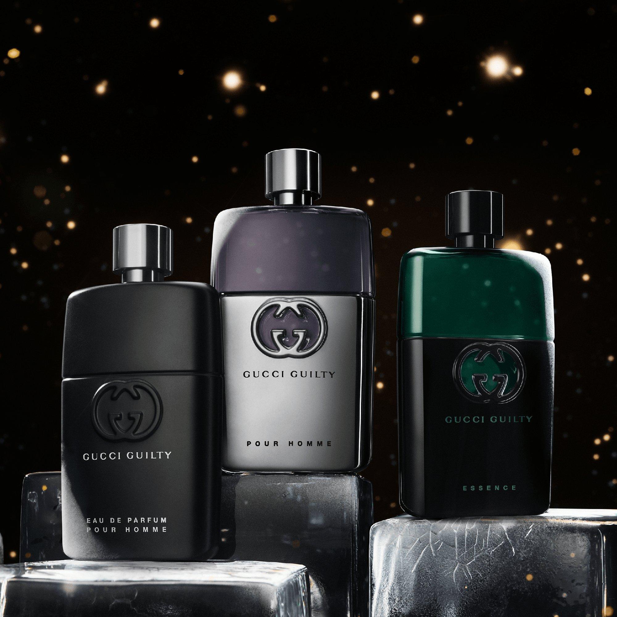 Sparkle under the stars, gift Gucci Beauty. Gucci Guilty Pour Homme Eau de Toilette for opens up with notes of lemon, lavender and patchouli. Gucci Guilty Pour Homme Eau de Parfum is a woody, aromatic and spicy fragrance. Gucci Guilty Essence Pour Homme presents an aromatic fougère scent.