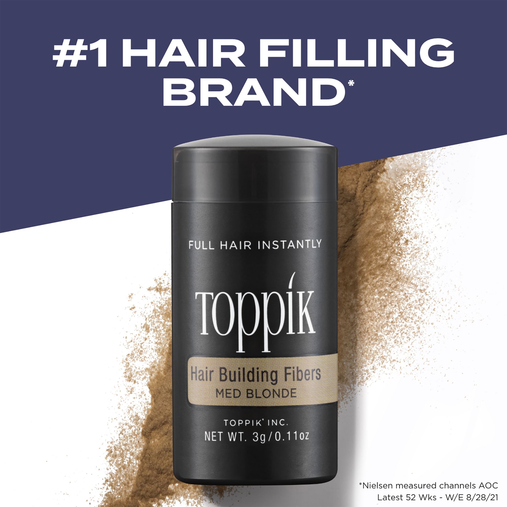 Toppik Hair Building Fibers, made of colored keratin blend undetectably with existing hair to instantly create the appearance of naturally thick, full hair.