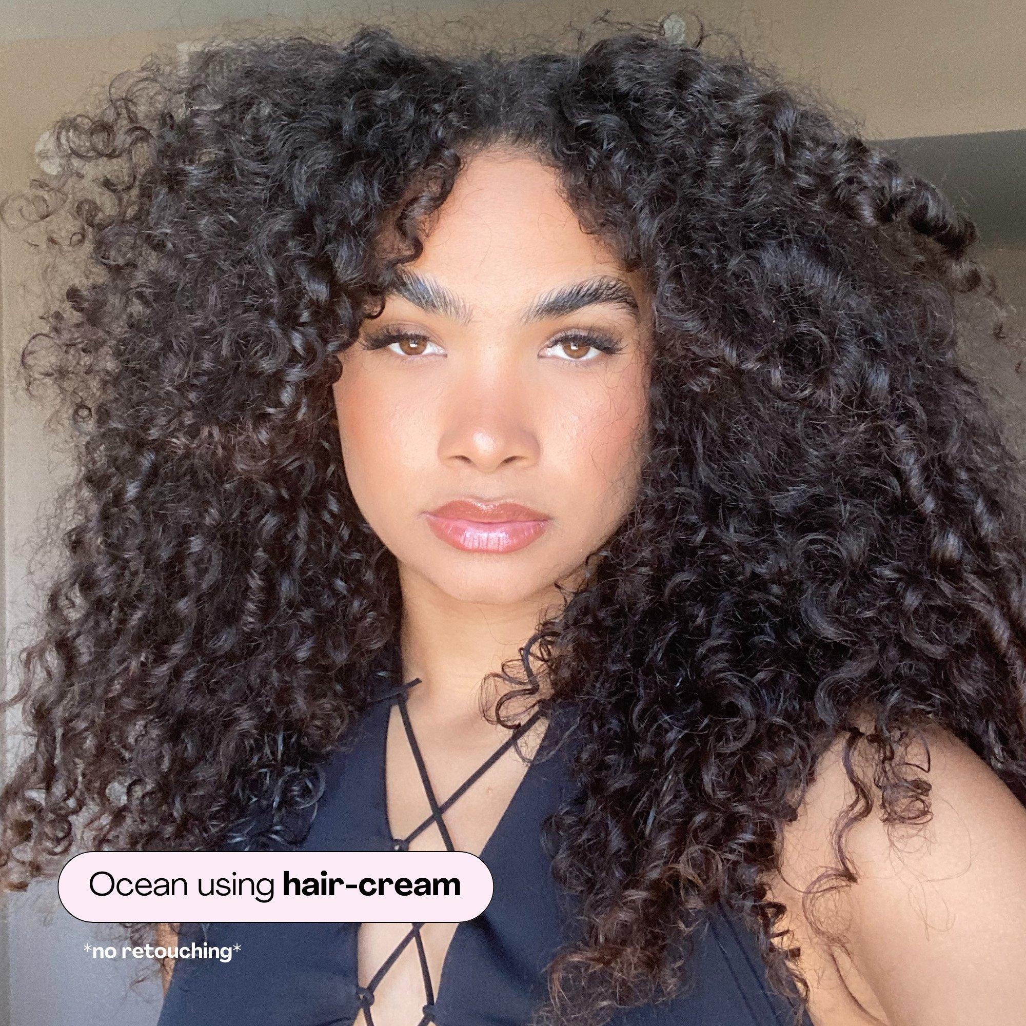 Rake through wet or damp hair in sections from root to tip. Make sure your hair has enough water in it to spread the hair-cream properly, making sure you coat every strand.