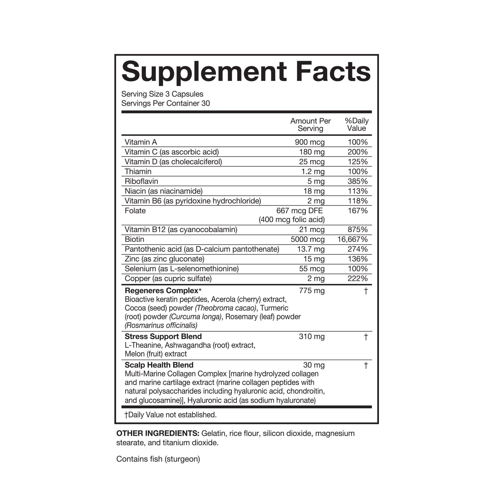 The SeroVital Hair Regeneres Advanced Dietary Supplement reduces shedding, strengthens hair, and reduces stress-related hair loss. It targets 7 root causes of thinning hair: stress, a poor diet, aging, over-styling, environmental stressors, metabolic changes, and poor nutrient absorption.*