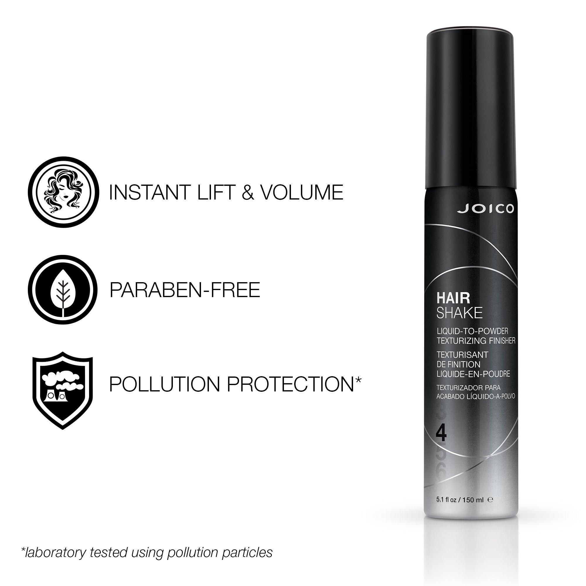 Joico Hair Shake Liquid-to-Powder Texturizing Finisher, a radically different, liquid-to-powder texturizer, delivers grip and voluminous drama in a single lightweight spray; with protection against pollution, it’s the ideal foundation for those long-lasting updos.