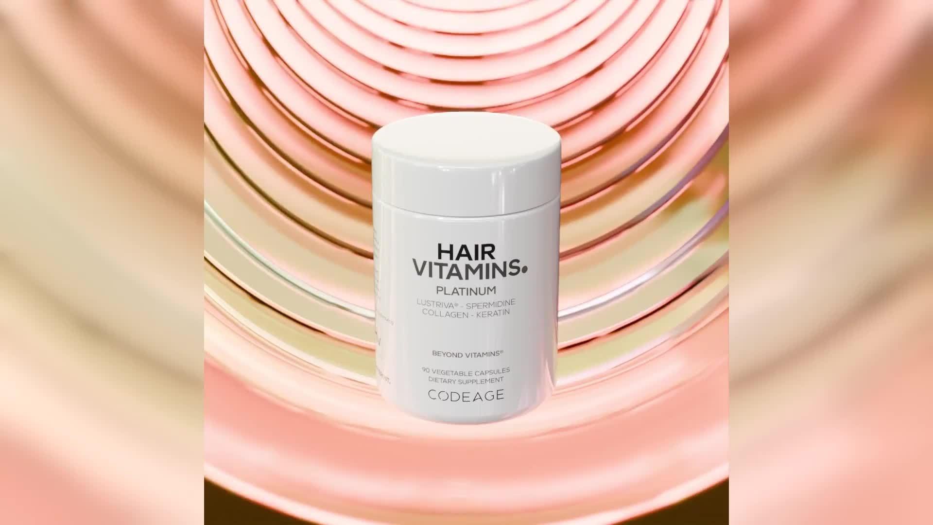 Codeage Hair Vitamins Platinum is formulated with a blend of vitamins, minerals, biotin, collagen, keratin, plant-based omega-3s, and botanical extracts, which are commonly included in hair wellness routines. It is designed to fit into a daily wellness routine.