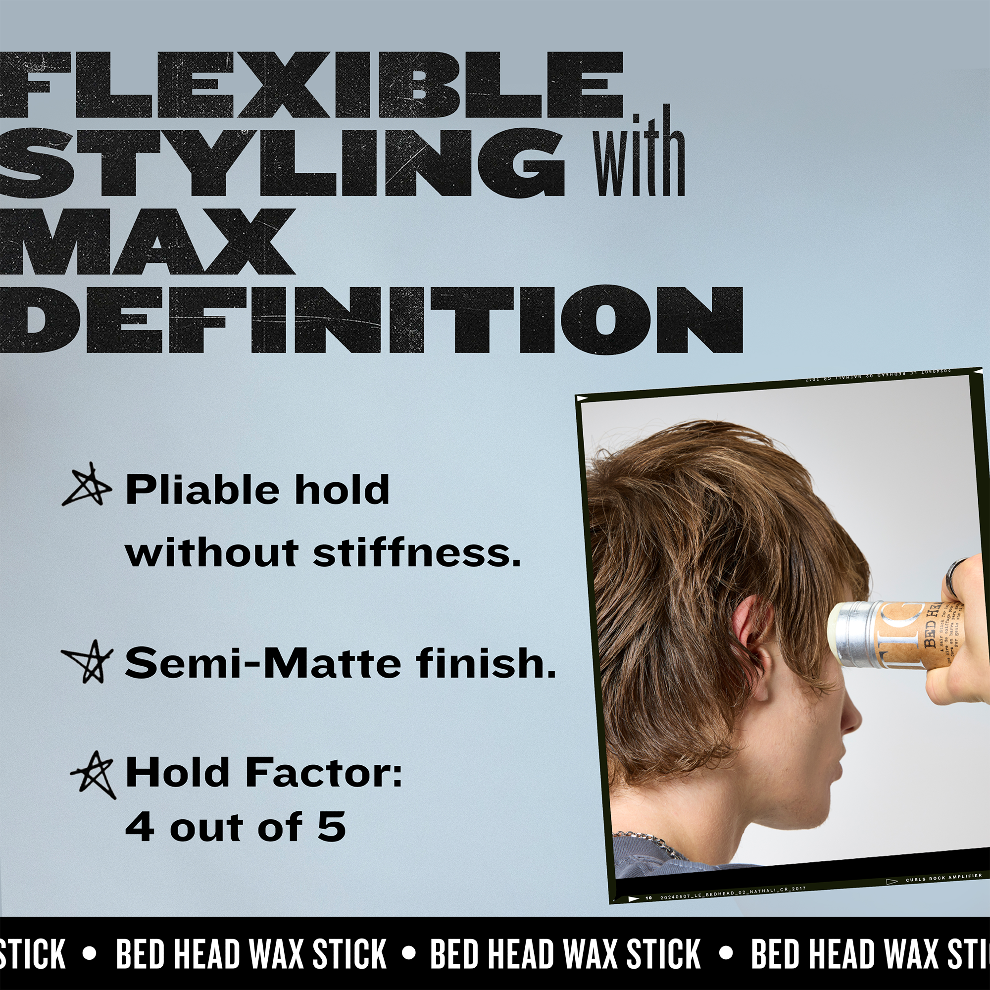 The original and iconic Bed Head Wax Stick! This hair wax stick gives hairstyles instant texture, definition and separation. The hair wax has a strong hold, and is super easy to apply and style hair with. The wax complex leaves hairstyles smooth and frizz-free.