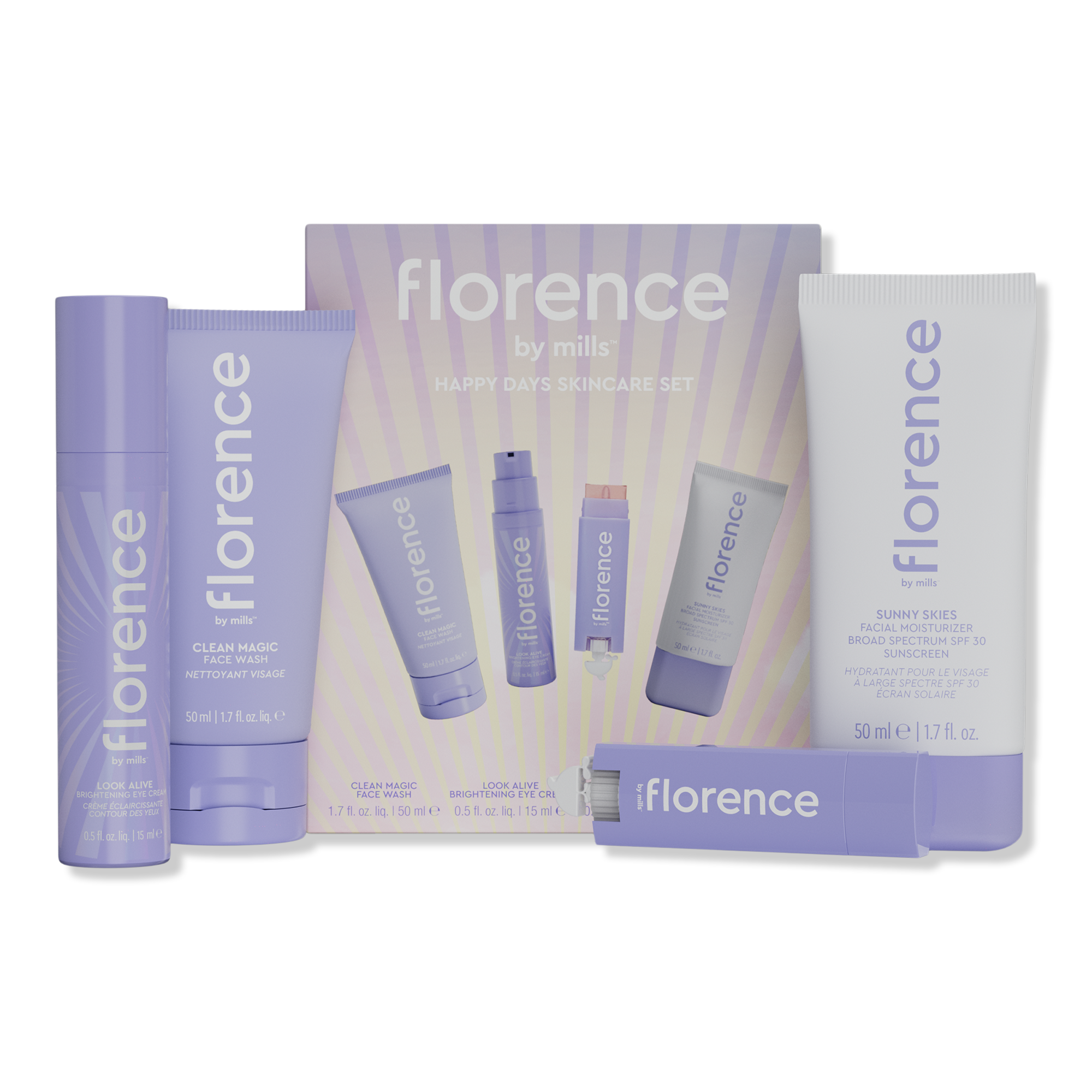 It's the little things like sunshine or finding your skin essentials that can bring so much joy! The florence by mills Happy Days Skincare Set includes a face wash, facial moisturizer with SPF 30, eye cream, and a lip balm to create the ultimate daily routine!