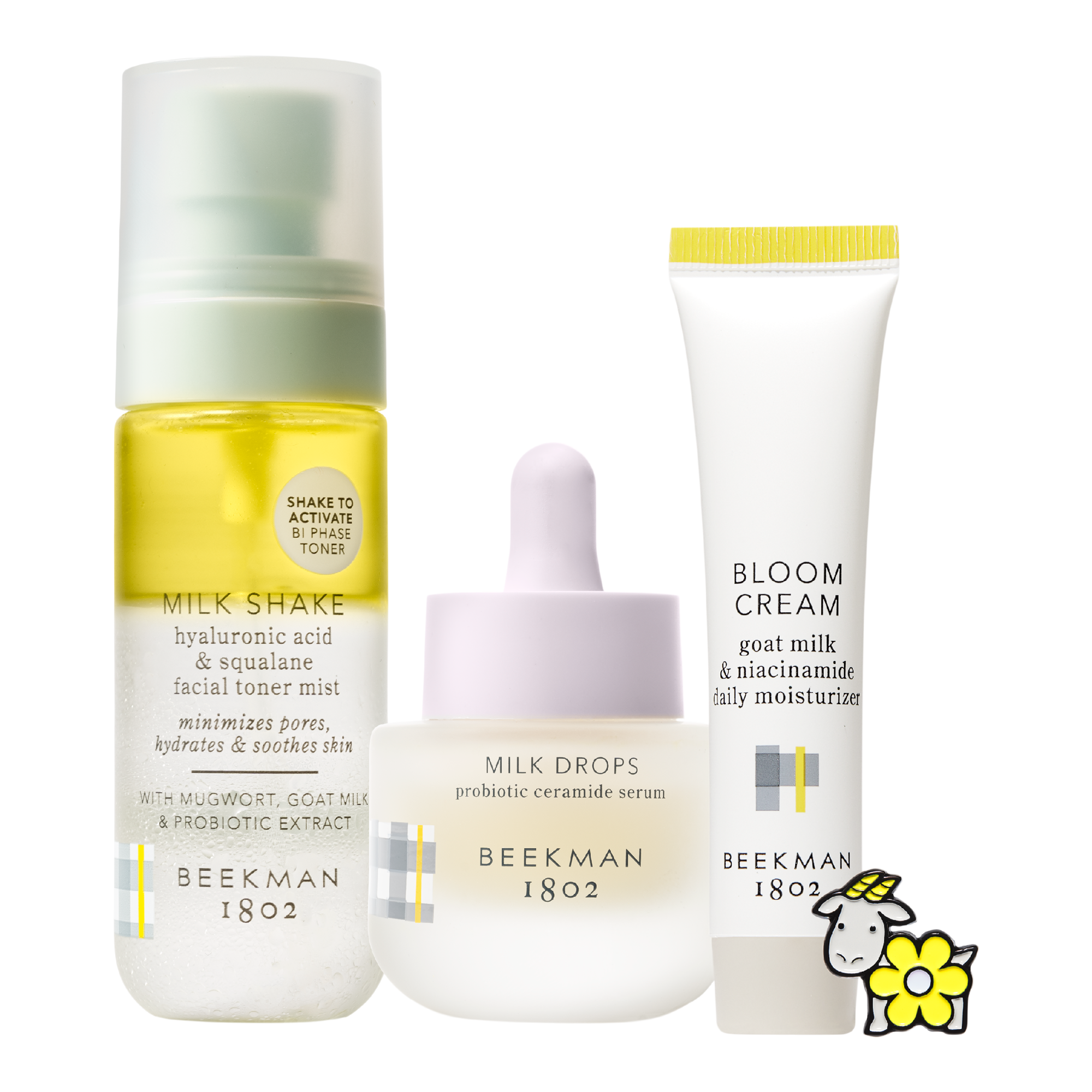 • Includes their bestselling Bloom Cream Daily Moisturizer, Milk Drops Ceramide Serum, and Milk Shake Hyaluronic Acid & Squalane Facial Toner Mist