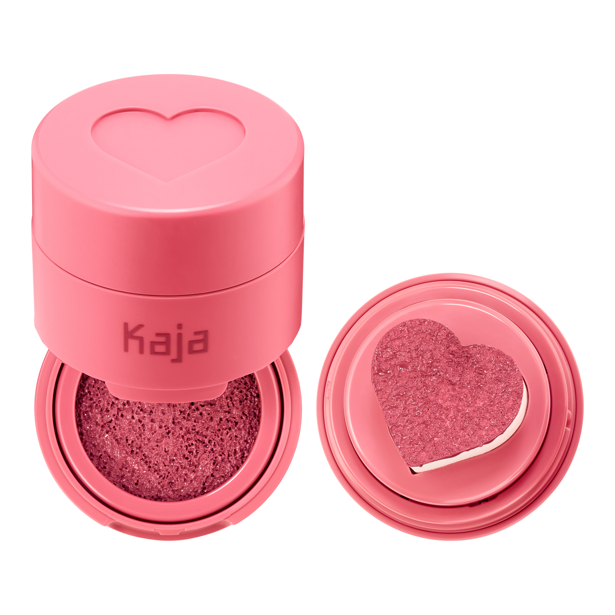 Cheeky Stamp: Twist the top to reveal the heart-shaped sponge. Pop open the bottom and press the applicator into the cushion compact. Stamp once for a natural-looking flush, or twice to build a bold pop of color, and blend.