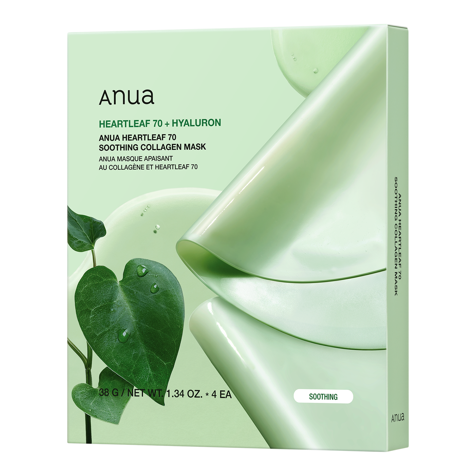 Anua Heartleaf 70 Soothing Collagen Mask is color-changing with solidified essence to help the skin feel firmer and smoother, enriched with nourishing heartleaf water.