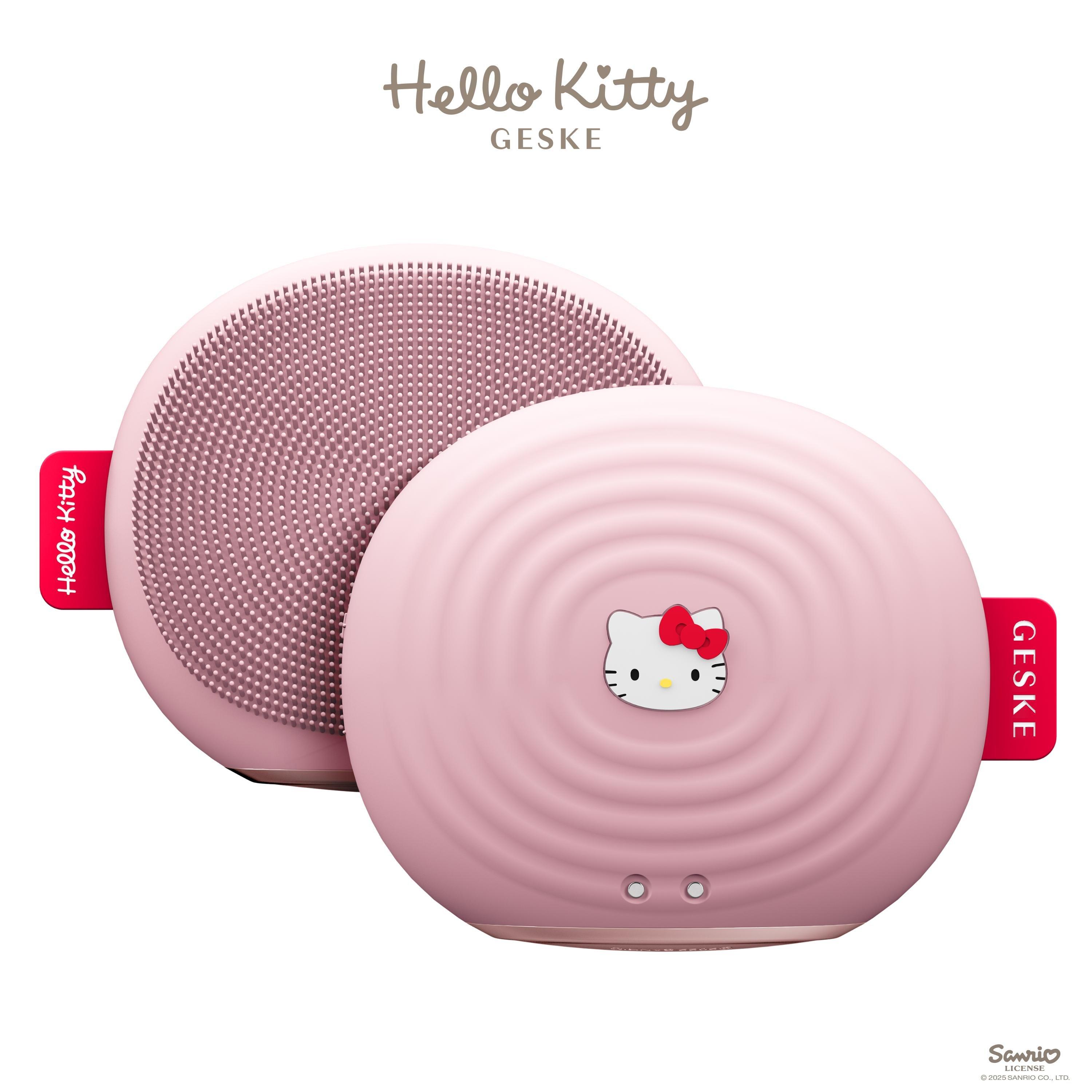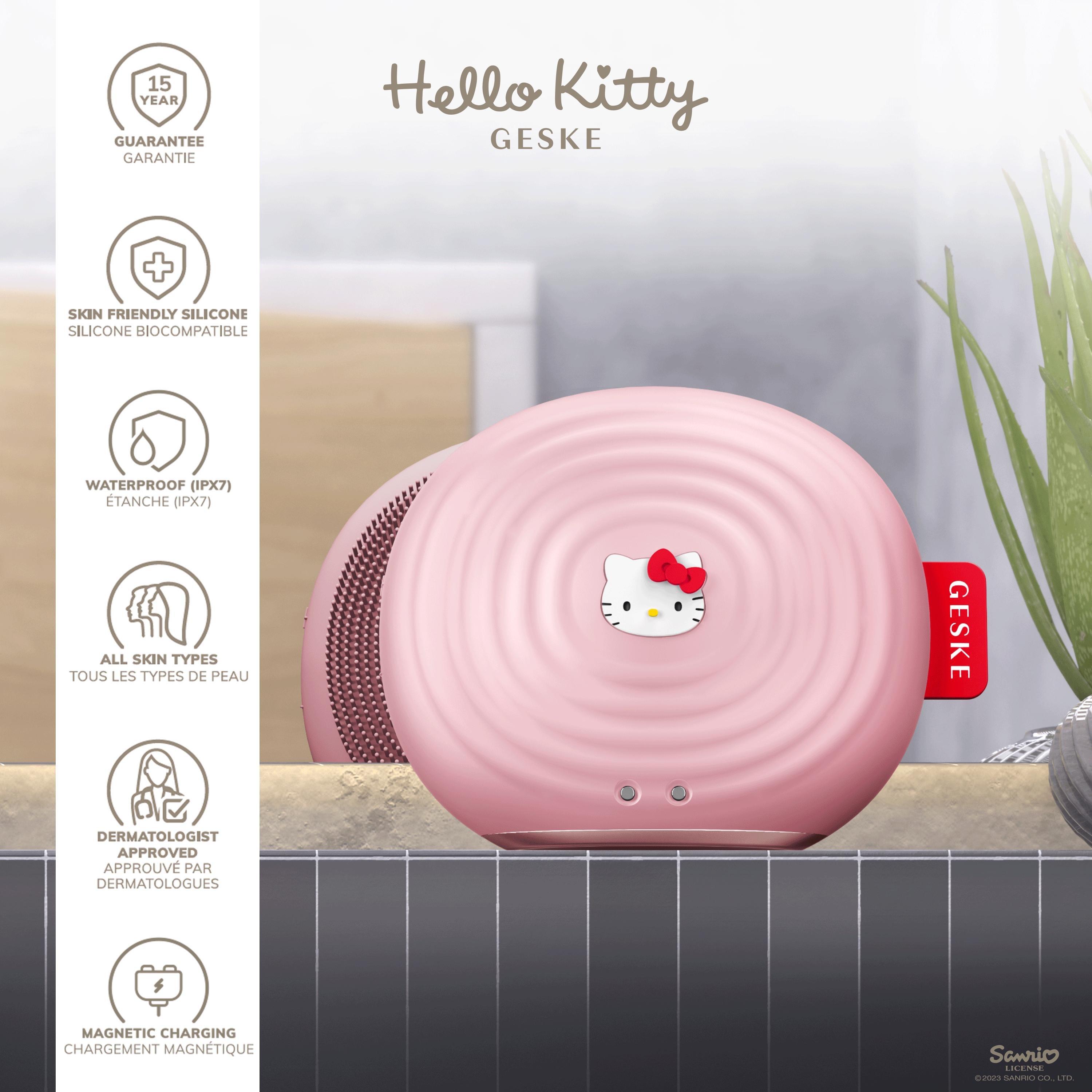 The GESKE SmartAppGuided Sonic Facial Brush 4 in 1 in Hello Kitty design offers several benefits at once: Deep cleansing, skin firming and relaxing anti-aging massages.