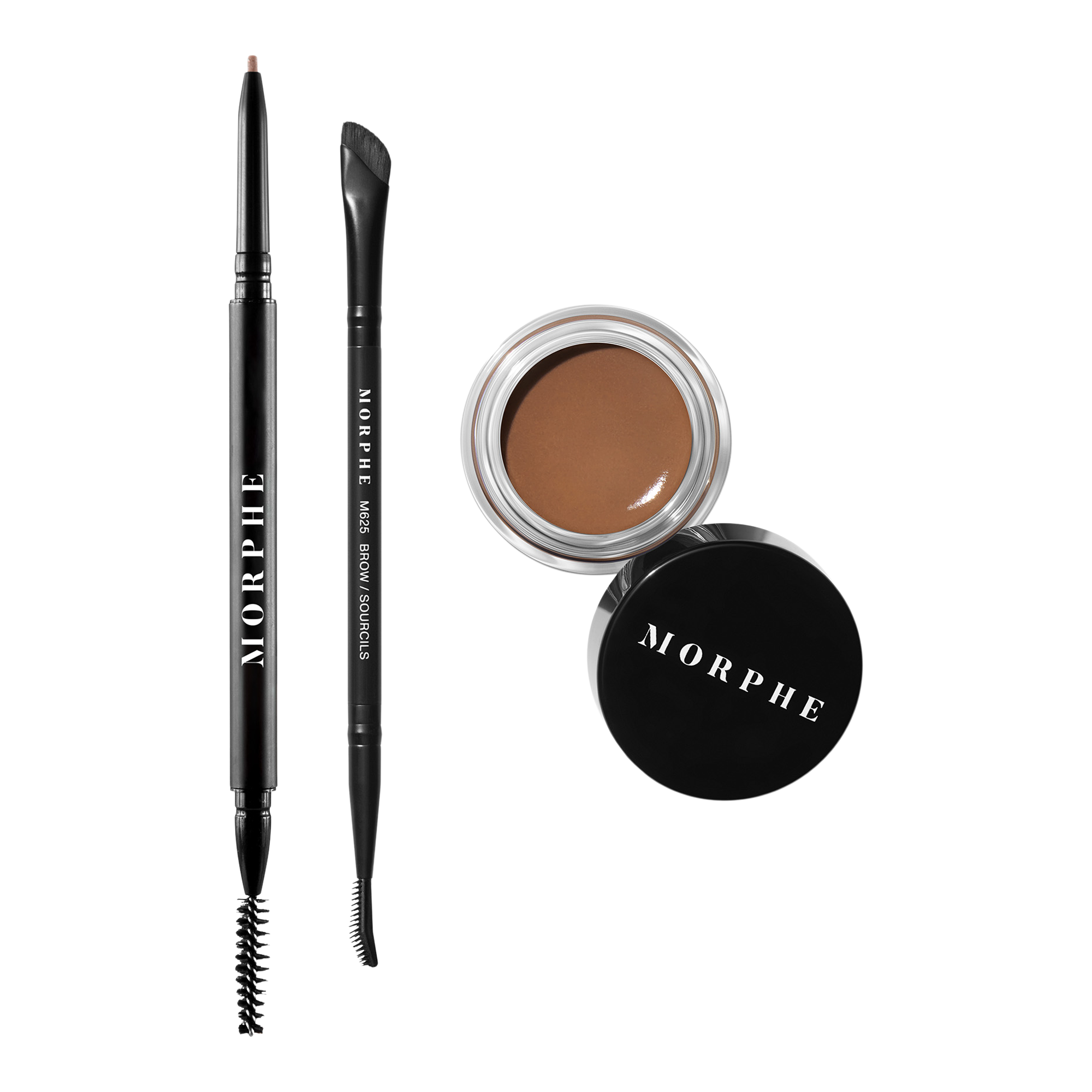 Master your daily brow mood with Morphe's High Archiever Everyday Essentials Brow Kit. Use the precision pencil to create hairlike strokes for natural and filled brows, apply the wax with the brush for lifted, tinted, and tamed brows, or combine all three for detailed and sculpted brows.