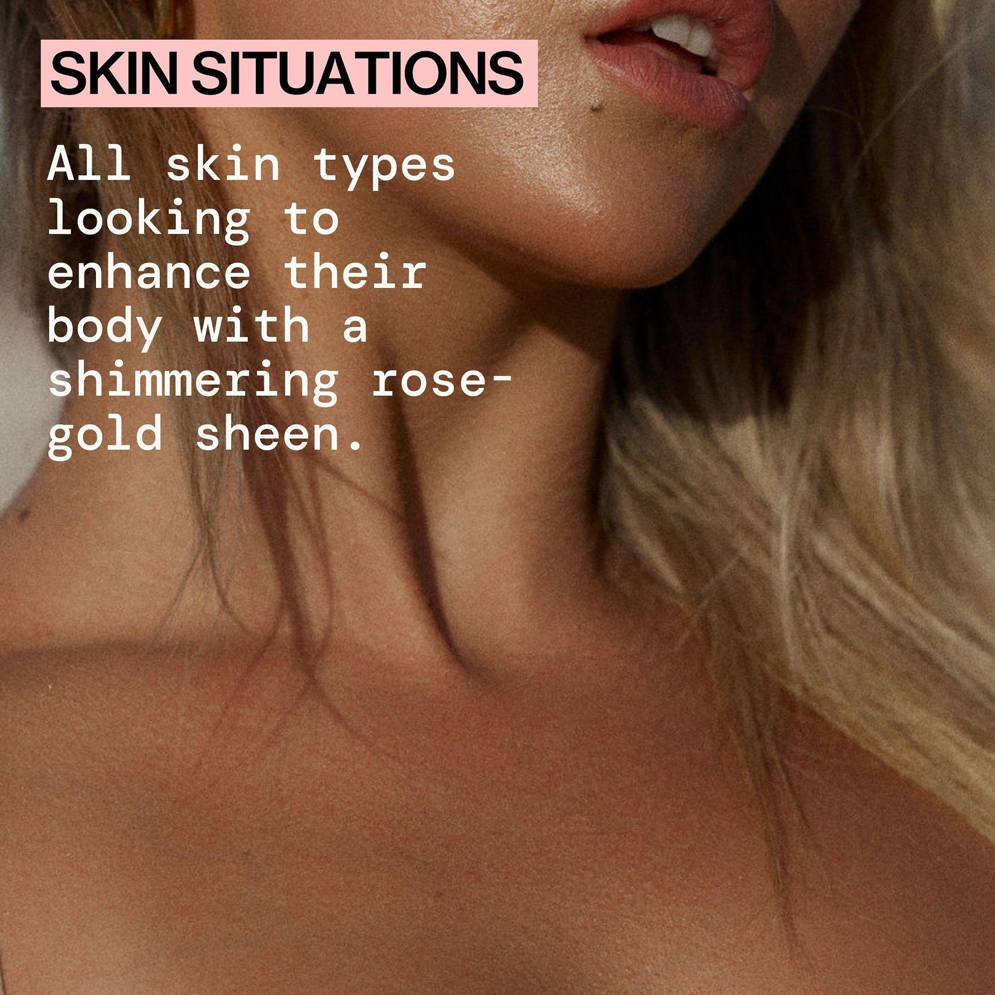Hey beautiful, shake well and apply to your skin when you want a kiss of shimmer and hydration any time.