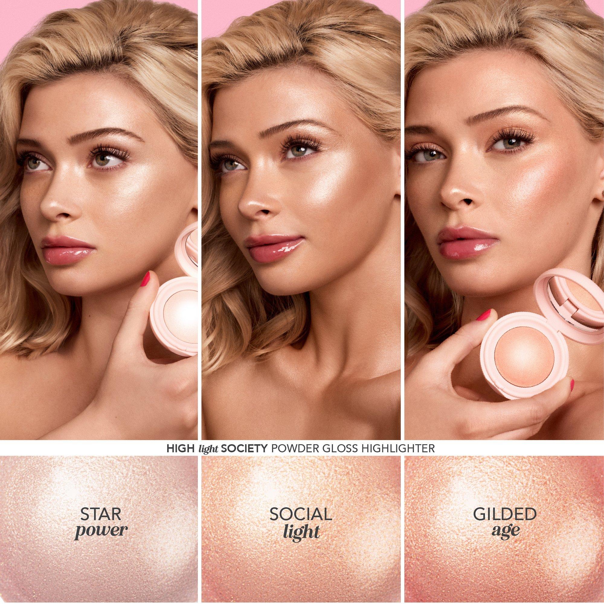 Polite Society's Highlight Society Powder Gloss Highlighter is a "light magnet" for the skin, combining the look of a liquid with the silkiness of a powder for a glass skin, wet effect.