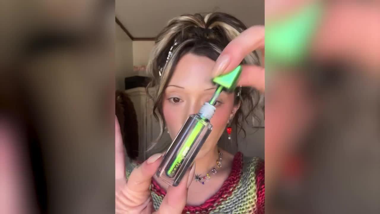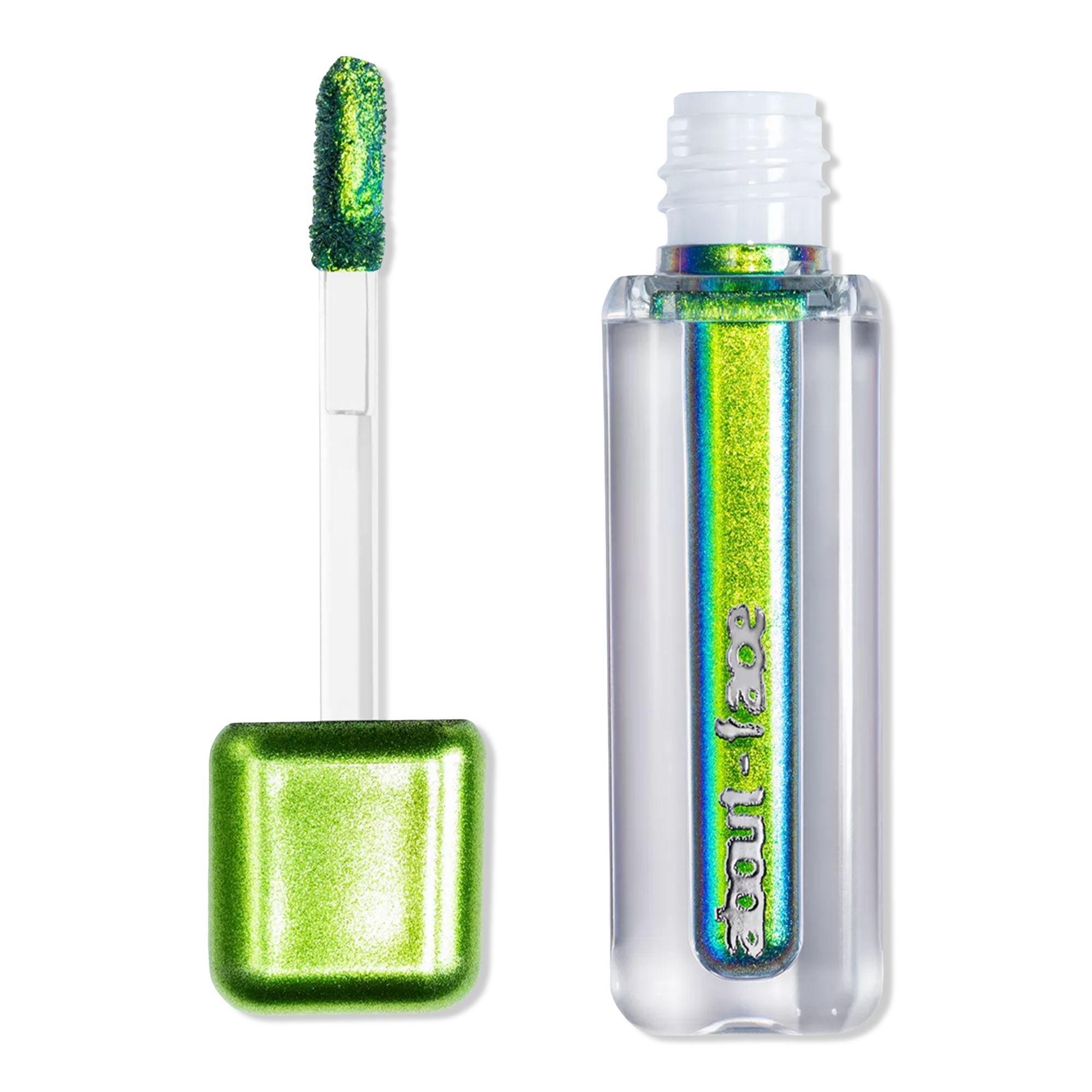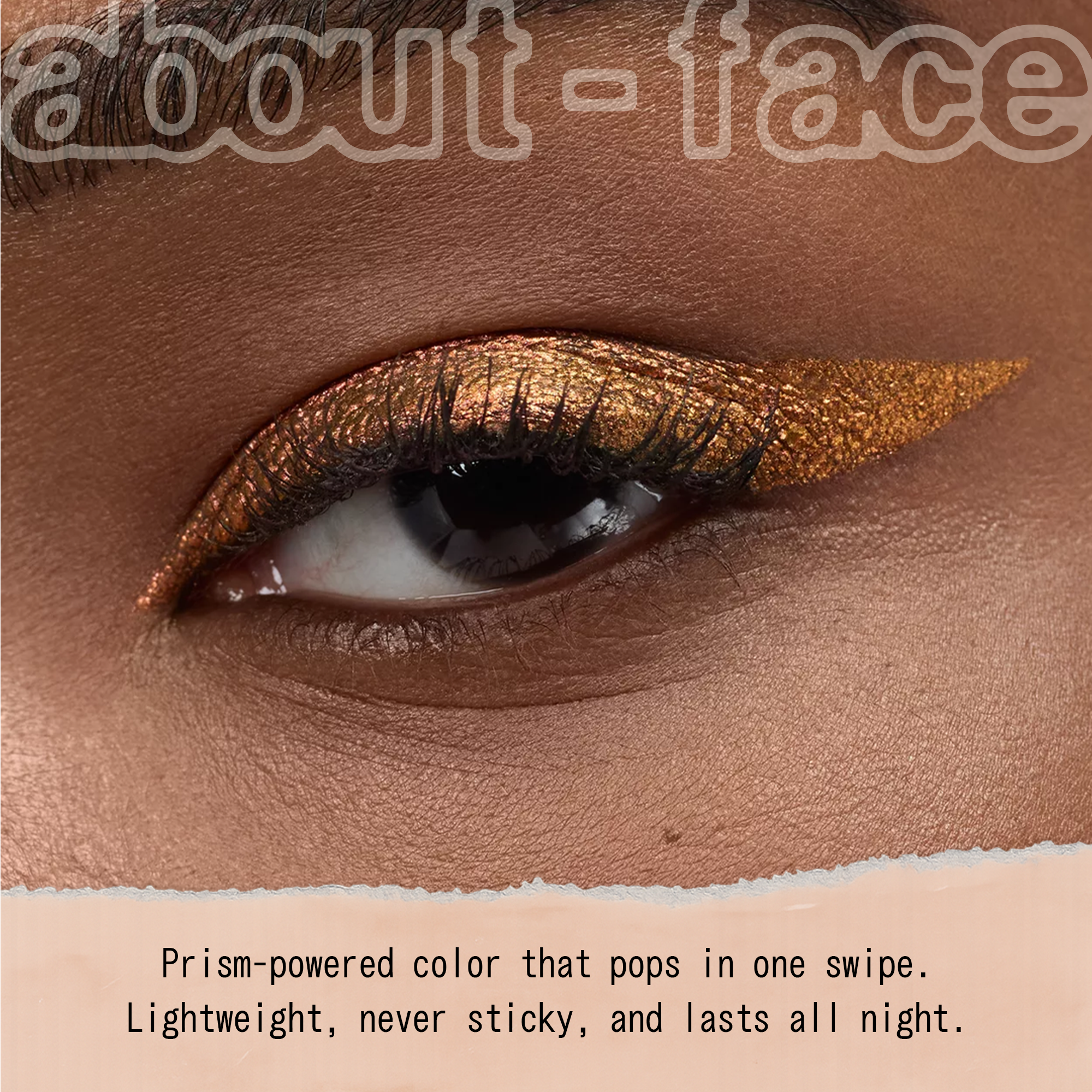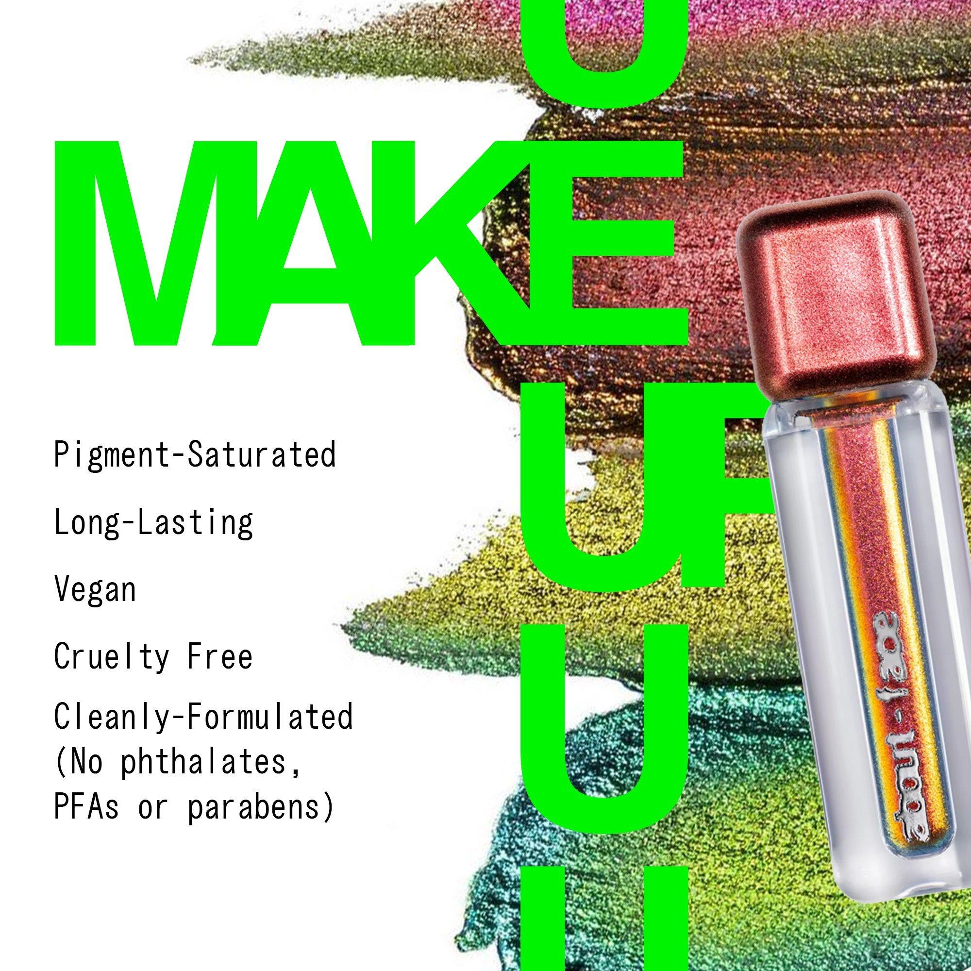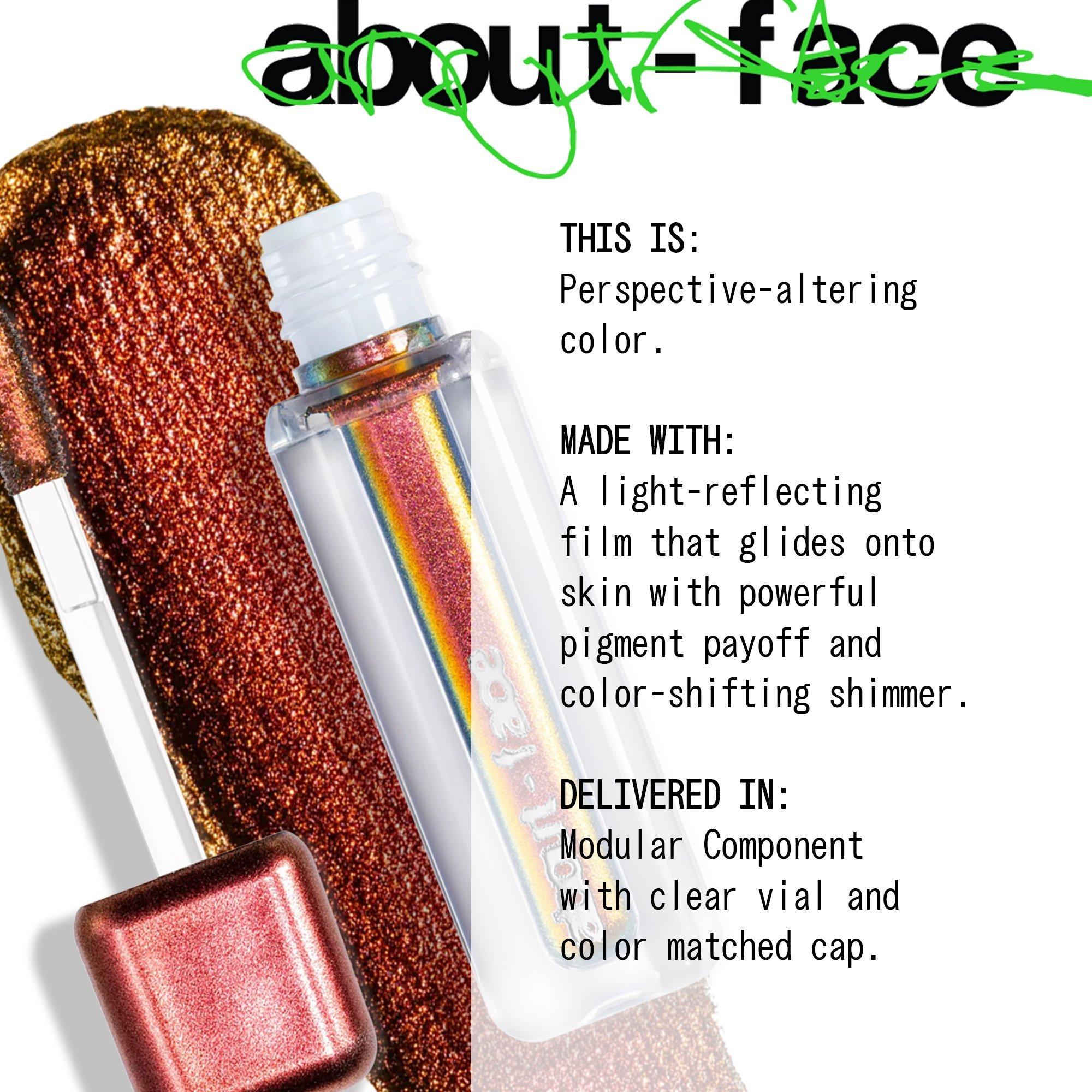 About-face Holographic Eye Paint is a color-shifting, chrome-like eyeshadow that hits all the right angles for a high-impact kaleidoscope effect.