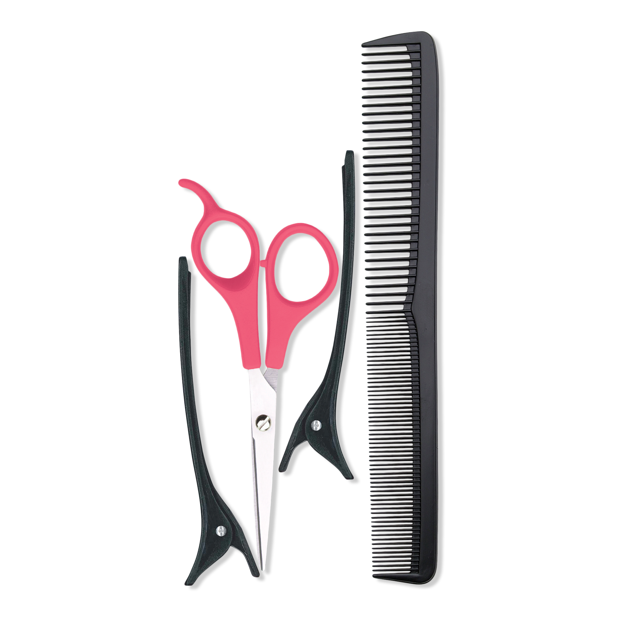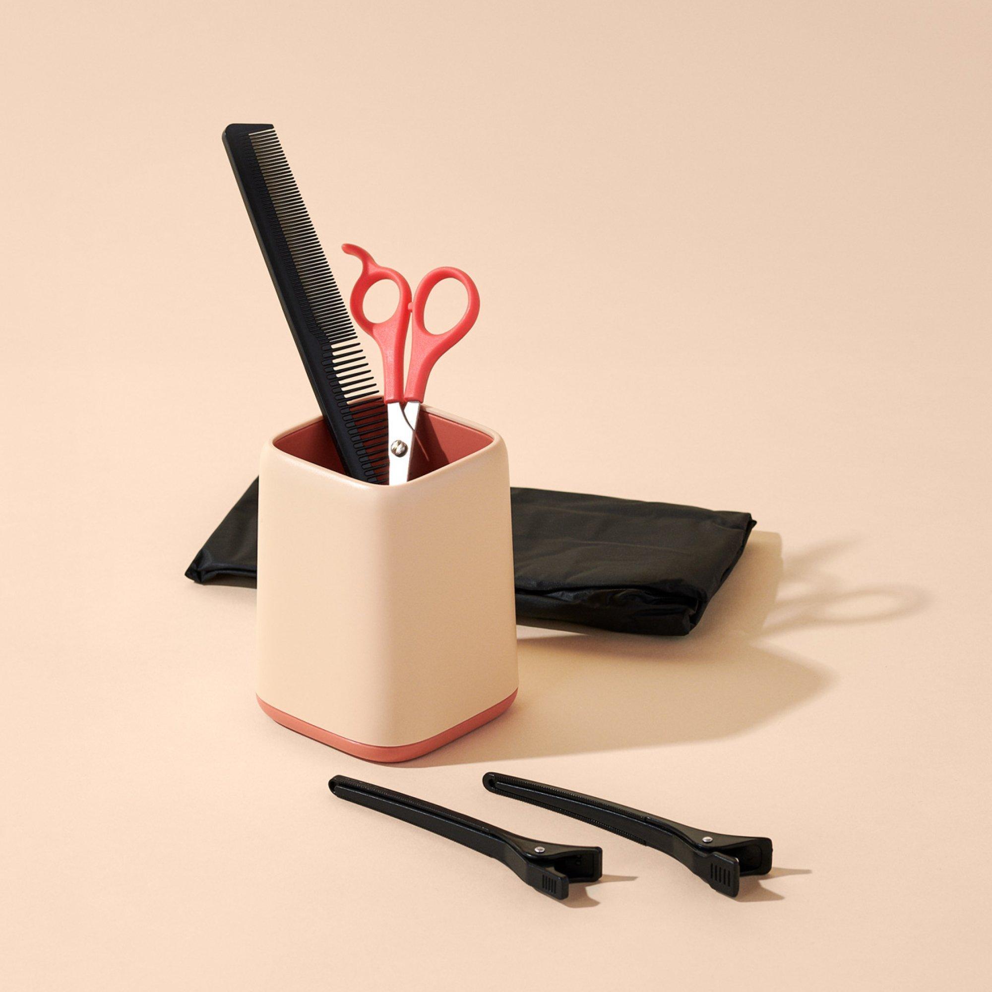 The Diane Home Cut Kit has everything you need for a professional looking hair cut at home: shears, cutting comb, cape and sectioning clips.