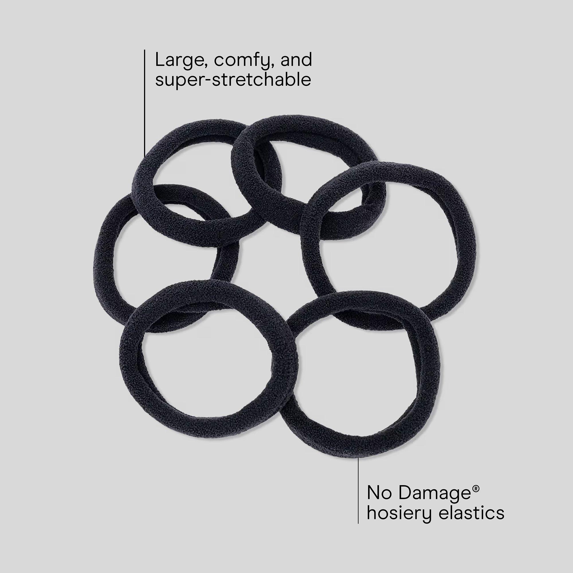 Conair no-damage hosiery elastics are designed to comfortably secure thick or curly hair. Made with a soft, stretchy design, these elastics are sized to hold more hair while helping to reduce pulling and discomfort.