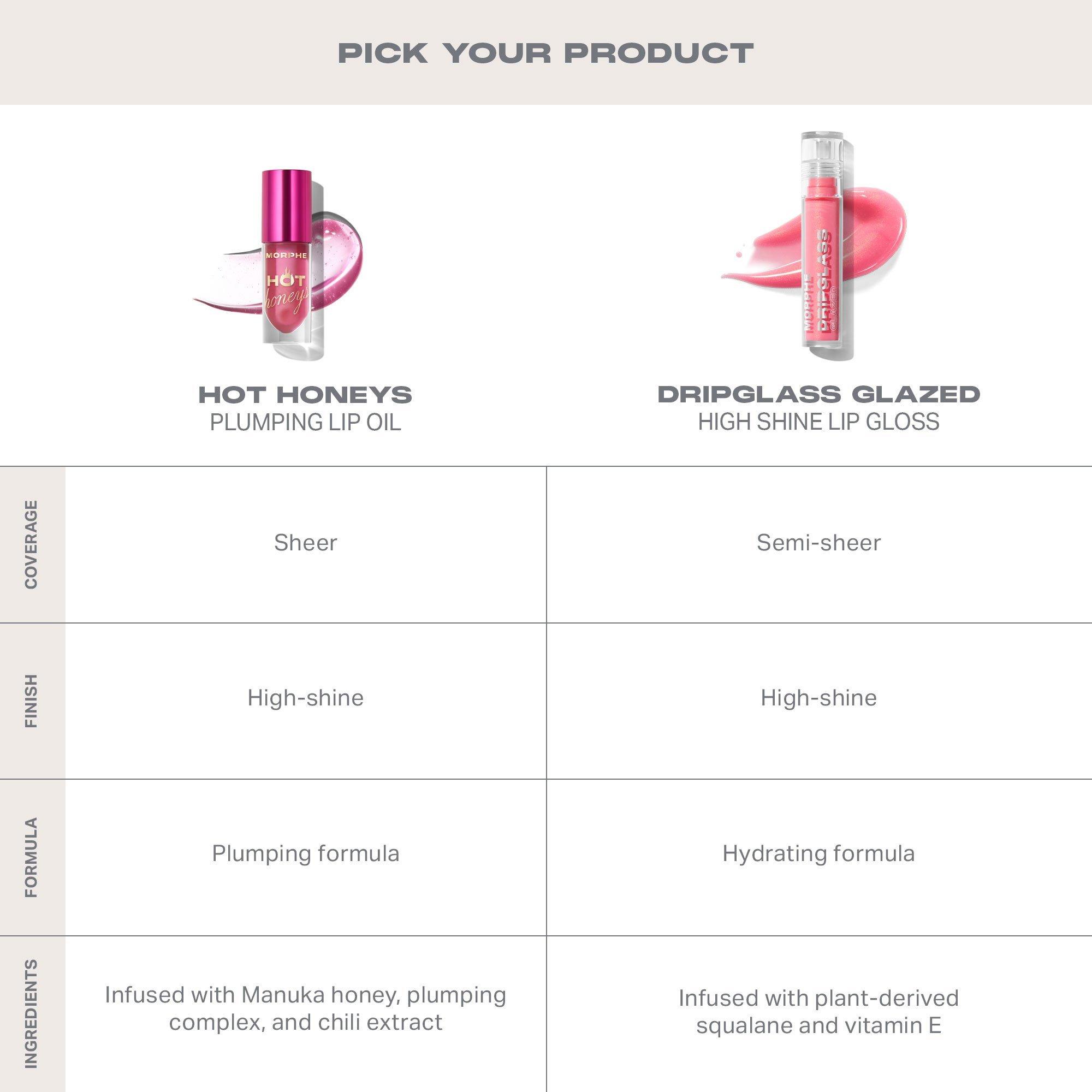 Morphe's Hot Honeys Plumping Lip Oil is a deeply hydrating lip oil infused with Manuka honey, a powerful plumping complex, and chili extract.