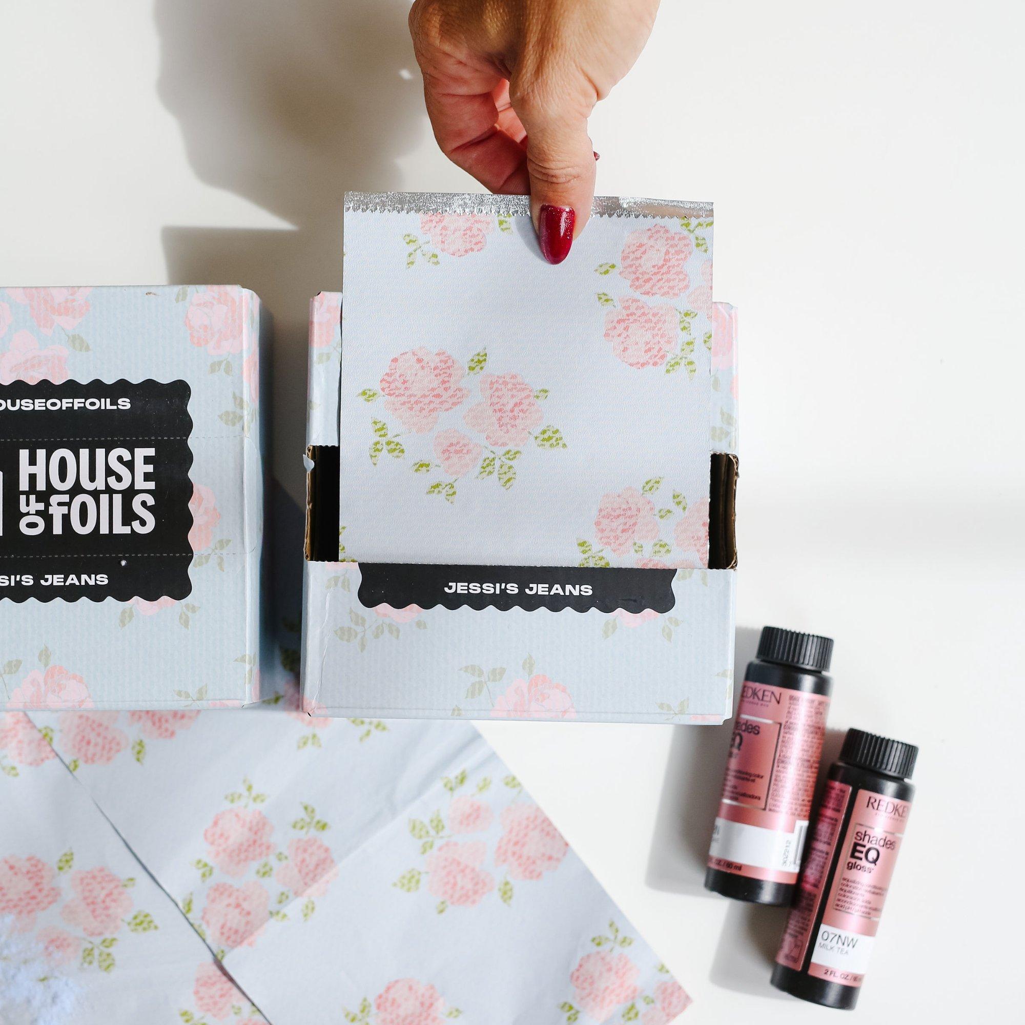 She’s back and better than ever. Jessi’s Jeans is a soft denim-inspired foil with delicate blushed florals woven throughout. Think classic blue jean energy meets effortless salon chic. She’s flirty, pretty, and made for behind-the-chair trendsetters who love a little nostalgia with their foils.